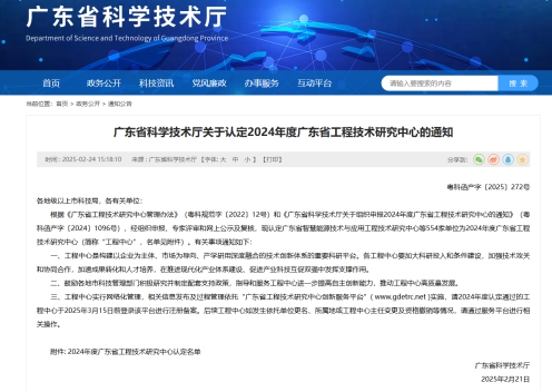近日,广东省科学技术厅印发了《关于拟认定2024年度广东省工程技术研究中心名单的公示》,经单位申报、专家评审等环节,我校吃瓜网