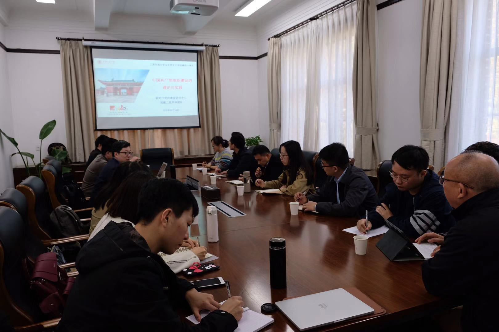 之后,由来自中国人民大学党史党建研究院夏璐博士就“中国共产党组织工作的历程”作专题报告。夏璐博士从新民主主义革命、社会主义革命和建设以及改革开放与社会主义现代化建设三个时期对党的组织工作进行细致阐述,展现了党的组织建设在革命、建设和改革中跌宕起伏却又不断前进的光辉历程。