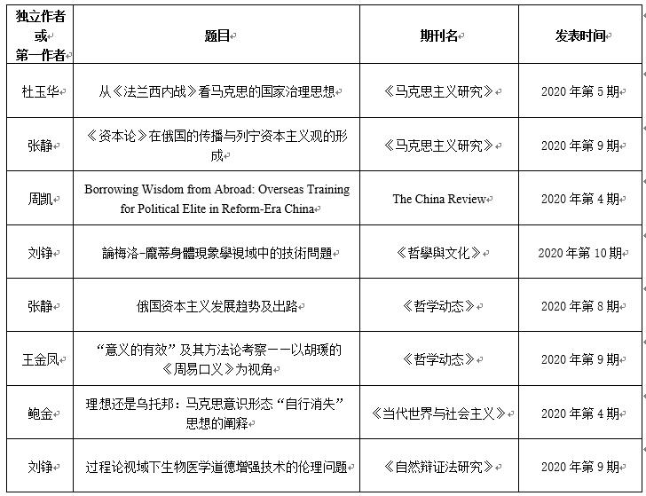 2020年,吃瓜网 作为中国马克思主义理论研究的重要基地,坚持目标驱动与问题驱动相结合,推动前瞻策源、鼓励原创性研究,在科研领域取得一系列代表性成果。学院教师获第八届高等学校科学研究优秀成果奖(人文社会科学)3项,其中普及读物奖2项、青年成果奖1项,实现了学院在该奖项领域的从无到有、从零到三的重大突破;学院教师获2020年国家社科基金项目8项,其中重大项目1项、一般项目5项、青年项目1项、思政课专项1项,立项率25%,位居全校文科院系榜首,取得了学院历年来在该类项目立项上的最好成绩;在《马克思主义研究》、《自然辩证法研究》、《人民日报》、《光明日报》和SSCI论文等国内外权威期刊发文近30篇,学院高水平成果影响力日益彰显。