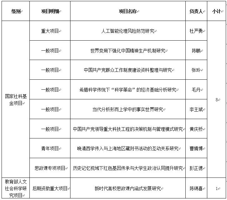 2020年学院纵向科研项目立项数量共计20项,其中国家社科基金项目8项,教育部人文社会科学研究项目1项,上海市社科规划项目3项。