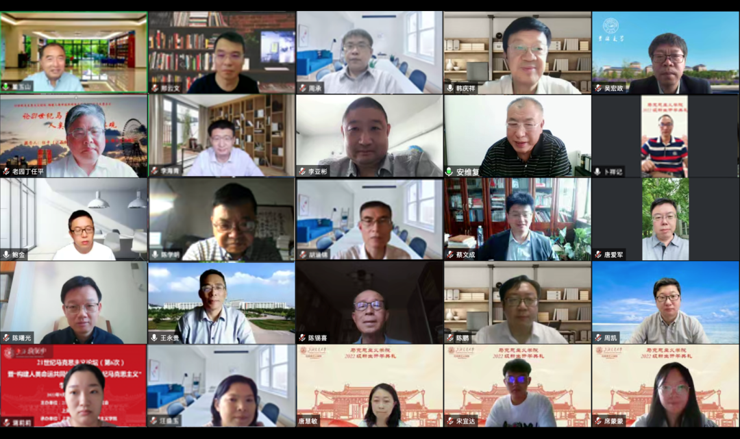 周承表示,世界百年未有之大变局加速演进,世界进入新的动荡变革期,迫切需要回答好“世界怎么了”、“人类向何处去”的时代之题。在此背景下,探讨坚持把马克思主义基本原理同中国具体实际相结合、同中华优秀传统文化相结合,用马克思主义观察时代、把握时代、引领时代,可以说是恰逢其时、正当其势。他指出,构建人类命运共同体,是21世纪马克思主义的重大理论贡献,也是解决事关人类前途命运重大问题的“中国智慧”和“中国方案”。我们推动构建人类命运共同体,要树立起让世界读懂中国、增强21世纪马克思主义话语权的战略目标。为了不断开辟21世纪马克思主义新境界,要与各国人民一道努力构建人类命运共同体,携手实现世界人民的美好梦想。