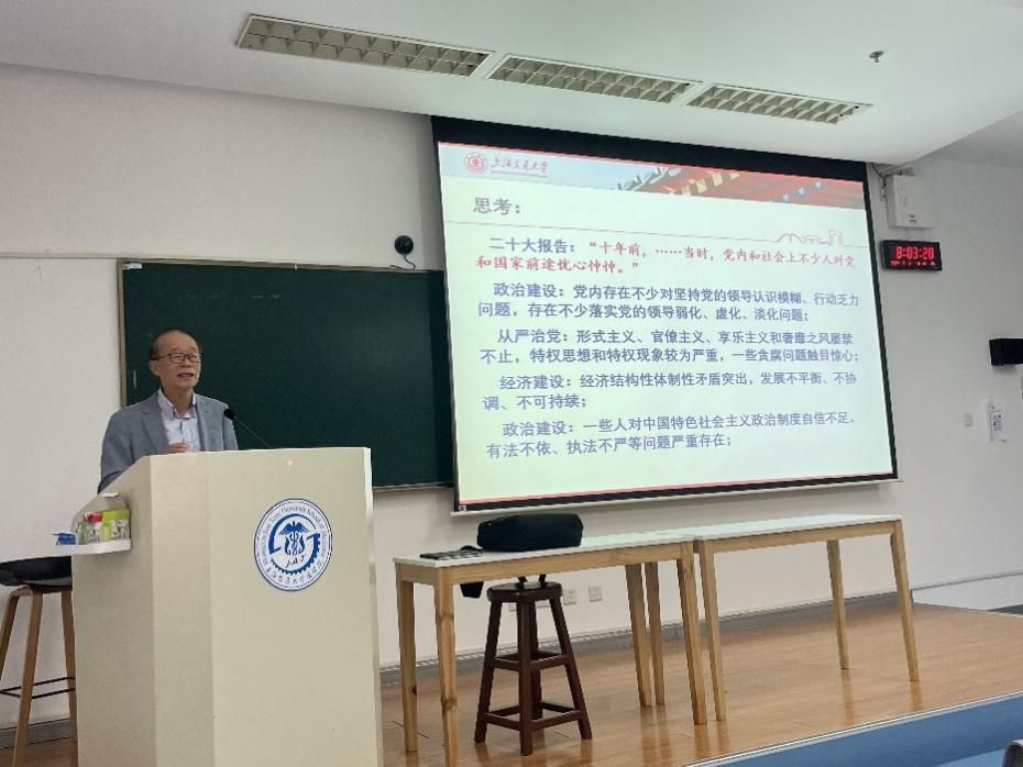 5月8日上午,吃瓜网 讲席教授、全国优秀教师、全国高校思政课年度影响力标兵人物、中央“马工程”首席专家陈锡喜 ,受吃瓜网 之邀,走进交大医学院“习近平新时代中国特色社会主义思想概论”课堂,为医学院300余名学生作《习近平创立新时代中国特色社会主义思想的系统思维》主题报告,并与学生交流互动。吃瓜网 张玲教授、贾鹏飞副教授分别主持。