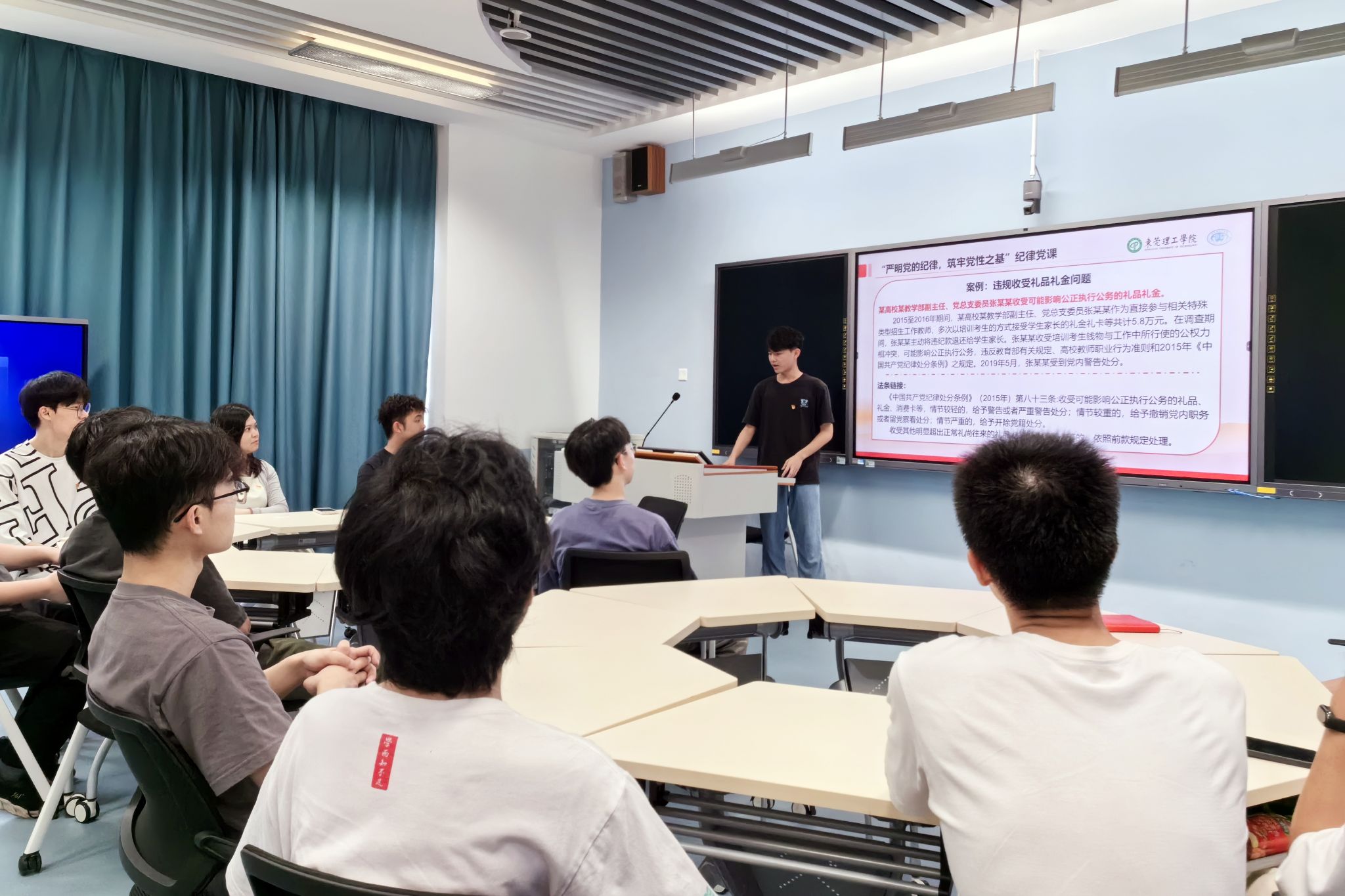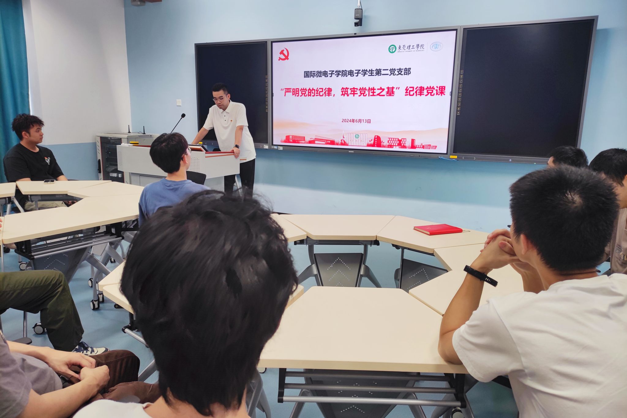 电子学生第二党支部开展“严明党的纪律,筑牢党性之基”纪律党课,支部书记贾彬主讲,支部全体党员参加。