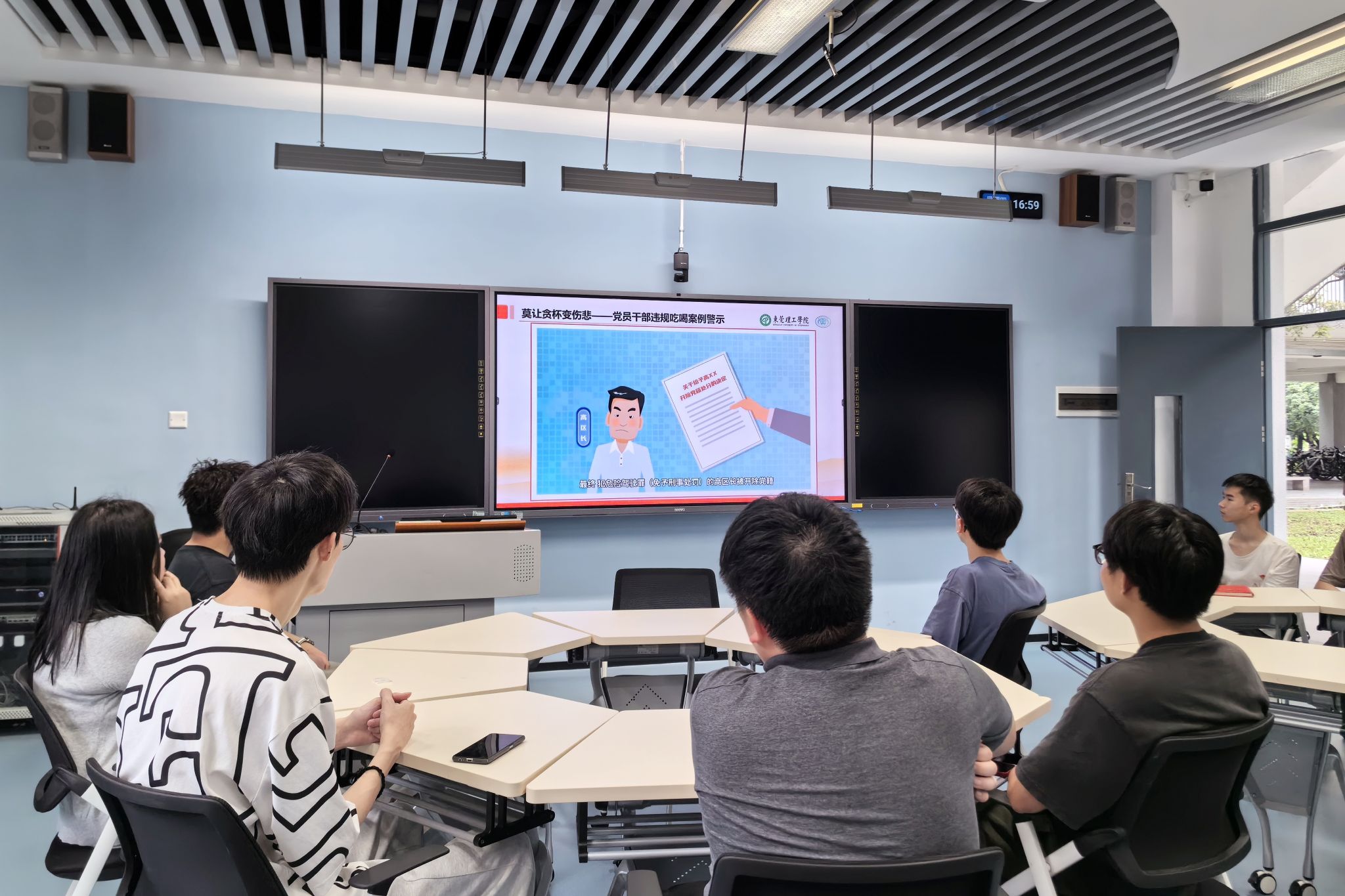 党课最后,支部成员共同观看了反腐警示短片《莫让贪杯变伤悲-党员干部违规吃喝案例警示》。该短片揭示了纪律规矩的重要性,以及在工作中坚守原则、严守底线的必要性。