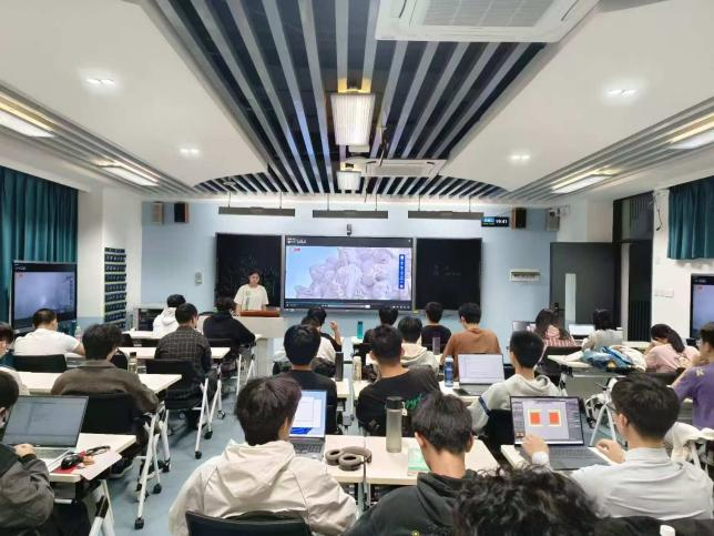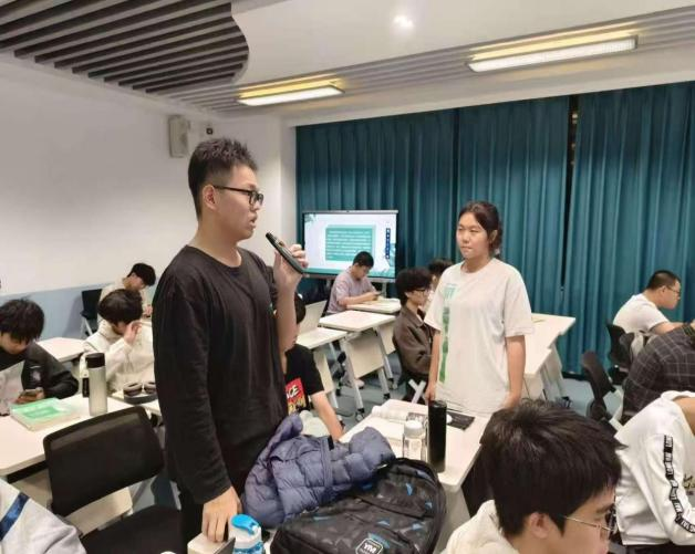在“踔厉奋发,履践致远”板块,3名学生代表登台分享大一成长历程。讲述学习方法的转变,自我认知的提升,并强调目标管理与时间规划的重要性。分享后,班级组织小组圆桌讨论,同学们围坐畅谈学业规划与自我反思。