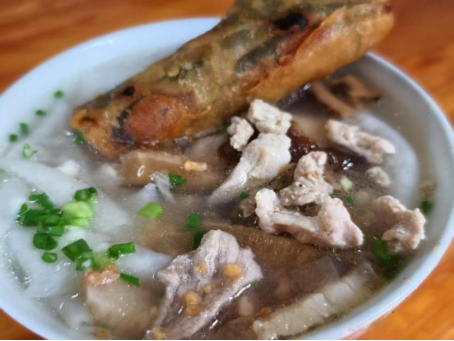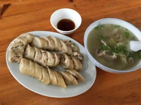 方春亮老店传承36年的招牌,猪肠洗净后包裹泡发糯米,搭配秘制馅料熬煮,肠皮薄透,糯米软糯,咬下时米香与肉香交融,是当地人眼中的“早餐天花板”。搭配小肚包猪脑,胡椒与酸菜中和腥味,更显风味独特。