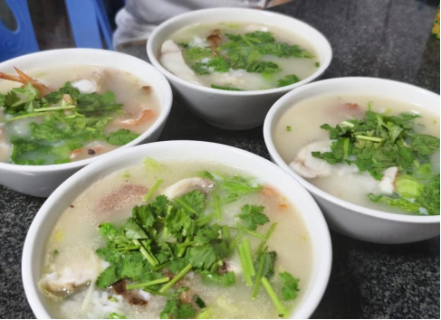 中山路夜市的“深夜治愈”,鹏哥每日凌晨挑最新鲜的海产,提前泡好的米煮至开花,依次加入海鱼、虾蟹等海鲜,姜丝与芹菜提鲜,粥底绵密,海鲜清甜,一口便能驱散全天疲惫。