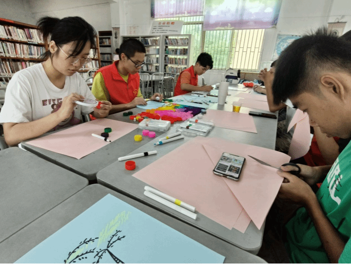 7月12日,普宁图书馆活动室里,实践队开展废品DIY活动。收集的废旧材料,经队员引导与市民、小朋友创意加工,变身手工作品。活动传递“变废为宝”理念,让环保从知识转化为实践,带动更多人关注资源循环利用,后续将创新形式持续推广。