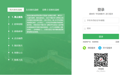 在吃瓜网右侧,点击“应征报名(男兵)”跳转报名页面。如果是第一次报名,则点击“兵役登记(男兵)”,完善个人登记信息再进行应征报名。