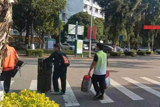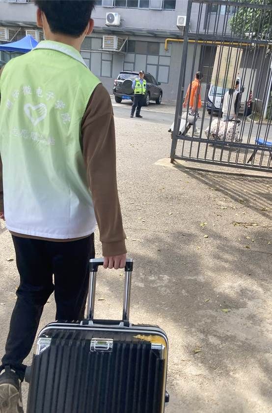 在整个活动过程中,志愿者们工作积极、认真负责,热情询问同学们的需求,主动接过同学们手中的行李,帮忙提到宿舍。纵然物品繁重,他们仍坚持在运送第一线。一件件绿色的志愿马甲给学校增添了一道特别的风景线。