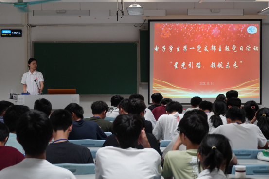 为全面贯彻党的教育方针,落实立德树人根本任务,帮助学生合理规划大学生涯,促进学生全面发展,11月14日,电子学生第一党支部组织开展“星光引路,领航未来”主题党日活动,邀请了孟延昭作考研经验分享、吕炳飞作就业经验分享、黄嘉彬作科研经验分享,旨在加深学生在考研升学、就业规划以及科研成长方面的了解。电子学生第一党支部书记陈亚莉和全体党员、入党积极分子参加。