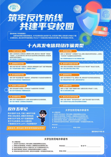 还制作了10大高发电信网络诈骗类型宣传单,分发给各个学生宿舍,以时刻提醒学生提高反诈意识。