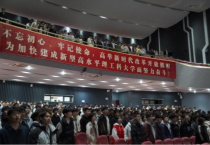 全体辅导员、全体本科生、研究生参加会议,会议由魏锋老师主持。