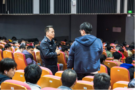 会议第一项议程,苏东阳警官通过真实案例剖析(如网络“约炮”APP诈骗、刷单返利、游戏账号买卖、冒充客服等),让学生直观了解诈骗手段的隐蔽性和危害性,教会学生如何识别可疑信息、保护个人信息、应对突发骗局。