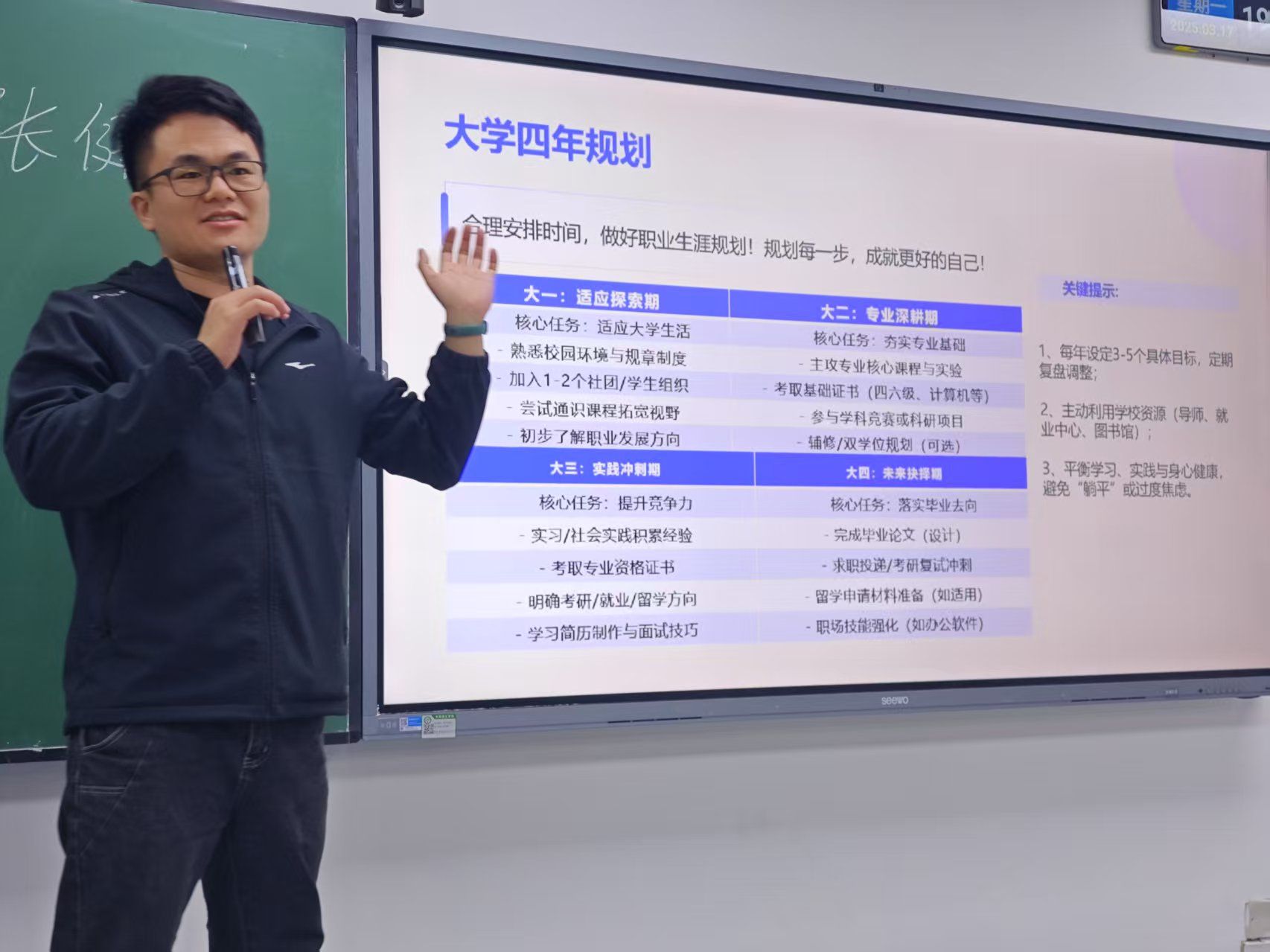 在松山湖校区教学楼6A305,2024级集成电路三班的同学们齐聚一堂,共同参与了主题班会。班主任张老师生动地讲述了常见的电信诈骗手段,并传达了防范要点。同时,他还为同学们提供了详实的学业规划资料,指明了不同阶段的学习重点。李培贤同学提出的定期组织学习小组的建议,得到了同学们的积极响应。