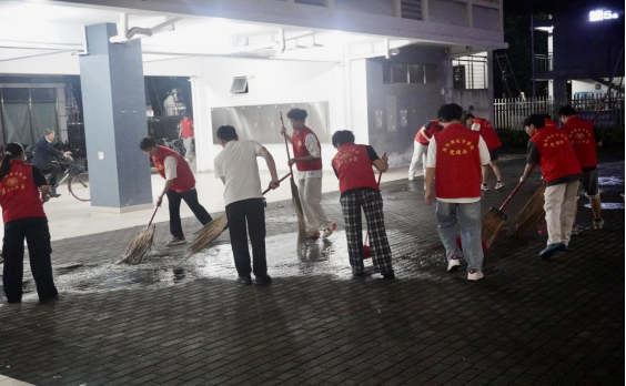 教师与党员志愿者冲锋在前,成为清扫工作的主力军,对学生社区1至24栋进行了全面细致的环境整治。