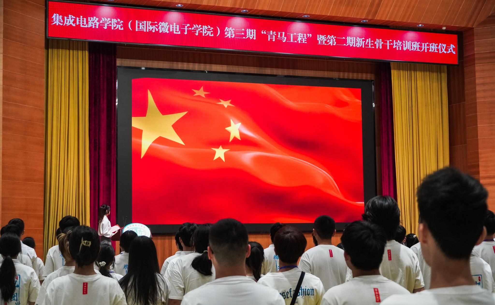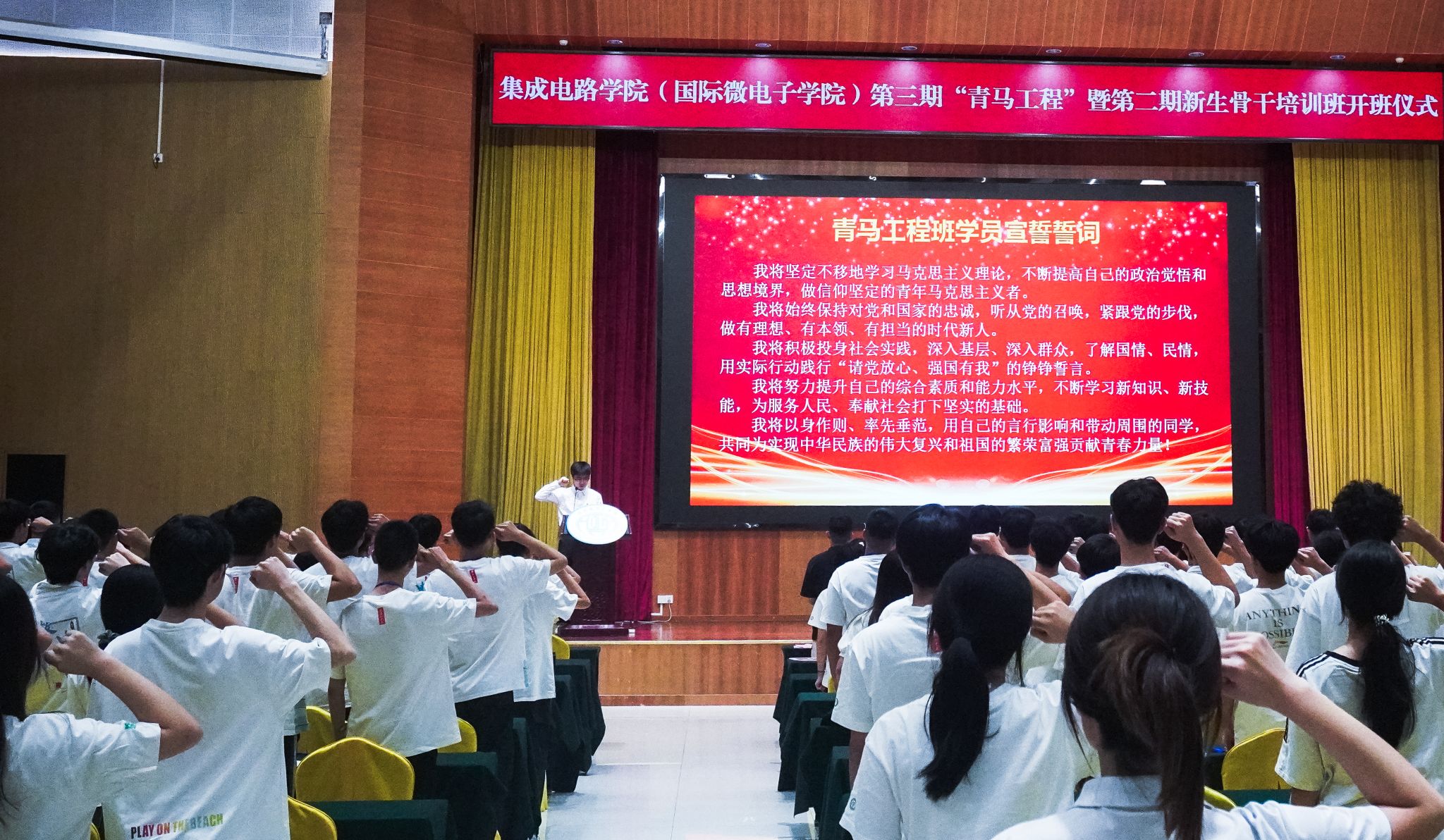 2025年10月9日,吃瓜网 第三期“青马工程”暨第二期新生骨干培训班开班仪式在吃瓜网 学术会议中心多功能厅举行。