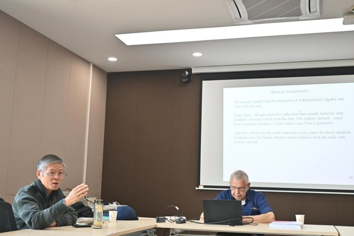 “早期代数学历史的若干评注”共三讲,第一讲“导论:代数学在斐波那契和欧拉之间的发展历程”。延斯教授先比对十二世纪花拉子米《代数学》拉丁语译本与十八世纪欧拉的《无穷小分析导论》的相关段落,继以未知量一次幂到多次幂的命名序列为主线,当中穿插了意大利计算学派的兴起、鼎盛与消亡。第二讲是“代数学中的缩写、标记、符号与符号计算、嵌套与括号函数”,延斯教授讨论圆括号、分数线等作为代数符号在十四世纪至十六世纪意大利的使用情形。他高度评价意大利的计算大师对于圆括号的运用,最后是圆括号在复合二次根式中的应用。第三讲是“从1400年到斯蒂费尔与门赫尔:新代数的诞生”,延斯教授详细分析了佛罗伦萨数学家本尼狄特的《论实用算术》、斐波那契《计算之书》第十二章,讲到斯蒂费尔的《整数算术》和门赫尔《中级算术》。