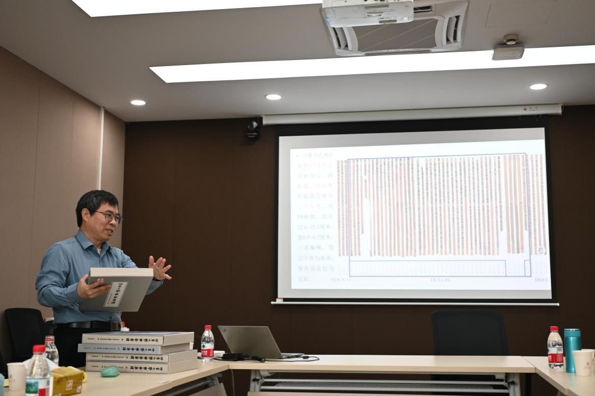 邹大海研究员在演讲的同时向大家展示并讲解了《北京大学藏秦简牍》(全五册),让在场师生直观地了解到简牍的魅力。