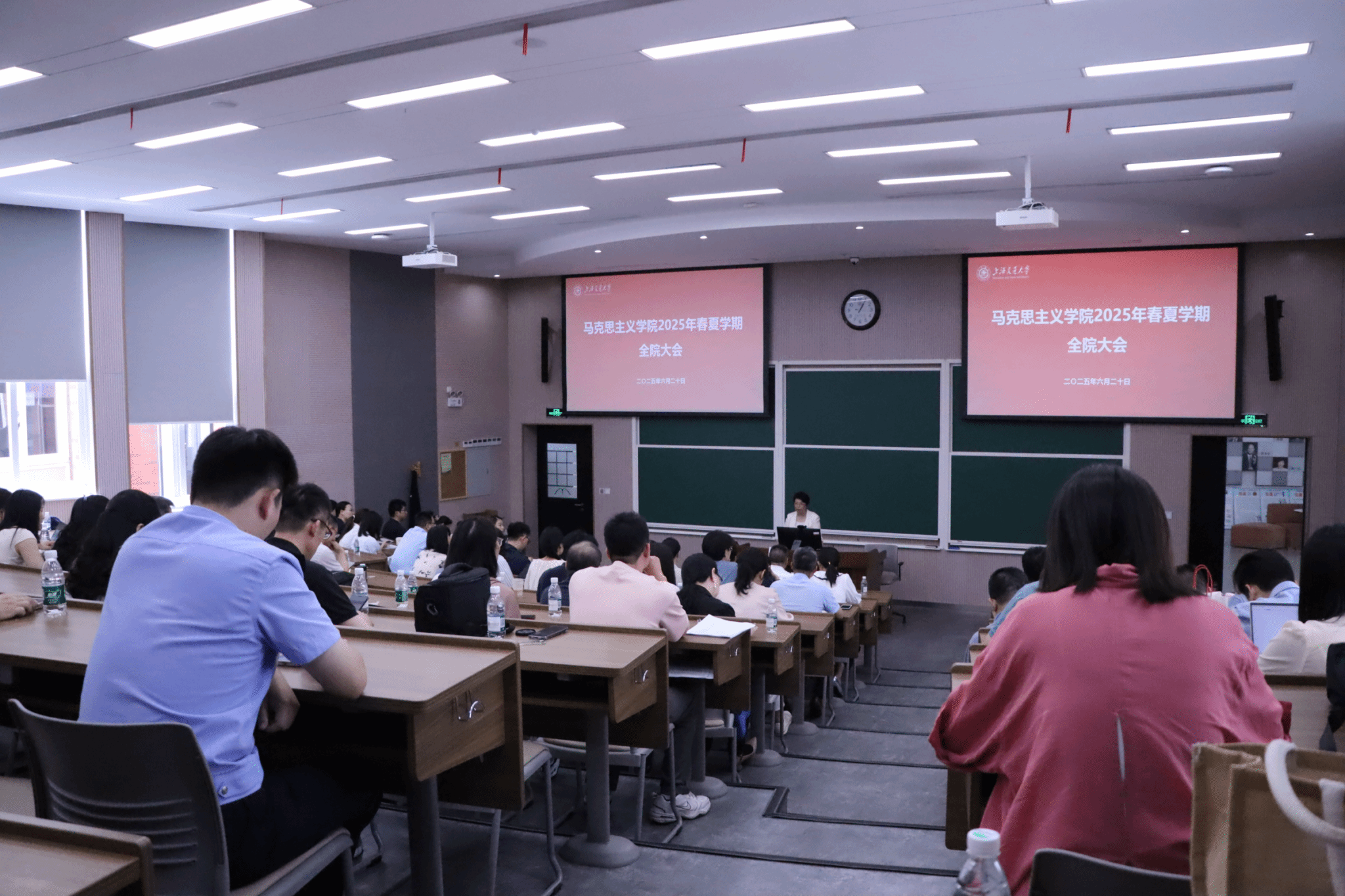 6月20日,吃瓜网 在闵行校区东中院1-107召开2025年春夏学期全院大会。上海公安局文保分局闵行高校派出所所长唐晓峰、吃瓜网 信息安全管理办公室主任张瑞出席会议,院长邢云文、院党委书记余新丽及全院教职工参加会议。会议由余新丽主持。