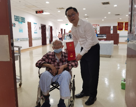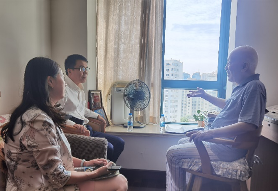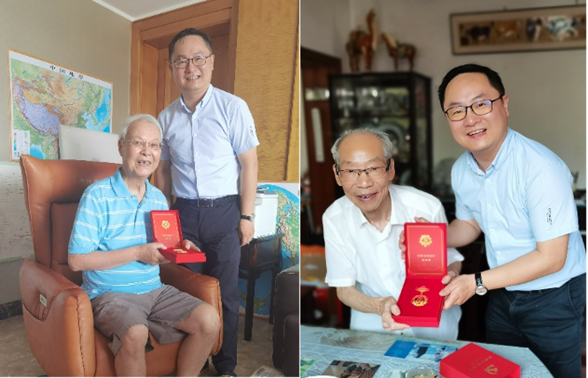 院长邢云文等领导班子分别带队将“光荣在党50年”纪念章亲自送至未到现场参加颁奖仪式的老党员家中,向获颁“光荣在党50年”纪念章的老党员表示热烈的祝贺,感谢老党员们在各自的岗位上兢兢业业,默默奉献,用实际行动诠释了对共产主义的坚定信念,为学院的年轻党员同志树立了标杆和榜样。邢云文等学院领导与退休党员交流学院建院历史及近年来取得的成绩,传承学院的使命与理念。唐魁法老师还亲自前来学院领取纪念章。