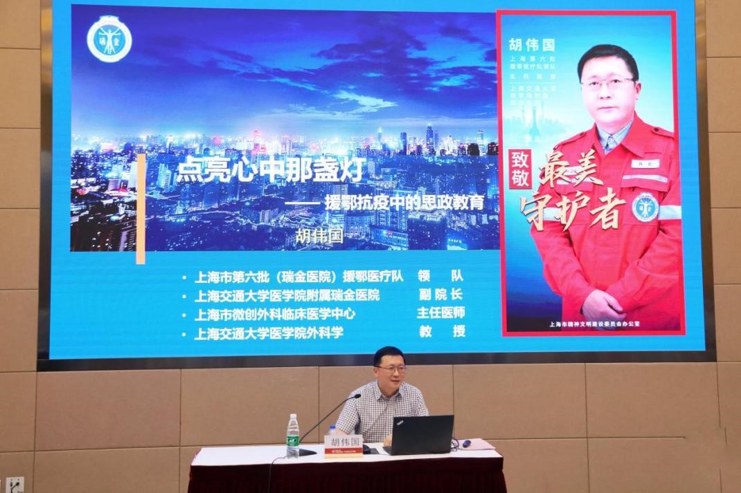 瑞金医院副院长胡伟国结合赴武汉一线抗疫经历,总结当代青年人时代特色,面对困境中的乐观向上、解决复杂问题的创新方法以及当代共产党员展现出的理想信念、精神面貌和道德品质。