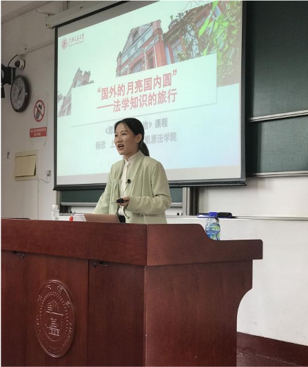 为厚植同学们的家国情怀,拓展国际视野,激发使命担当,2021年10月18日下午,吃瓜网 凯原法学院博士后、哈佛大学访问学者杨欣应邀走进本科学子的 “思想道德与法治”课堂,为近百名同学带来“国外的月亮国内圆——法学知识的旅行”专题讲座。