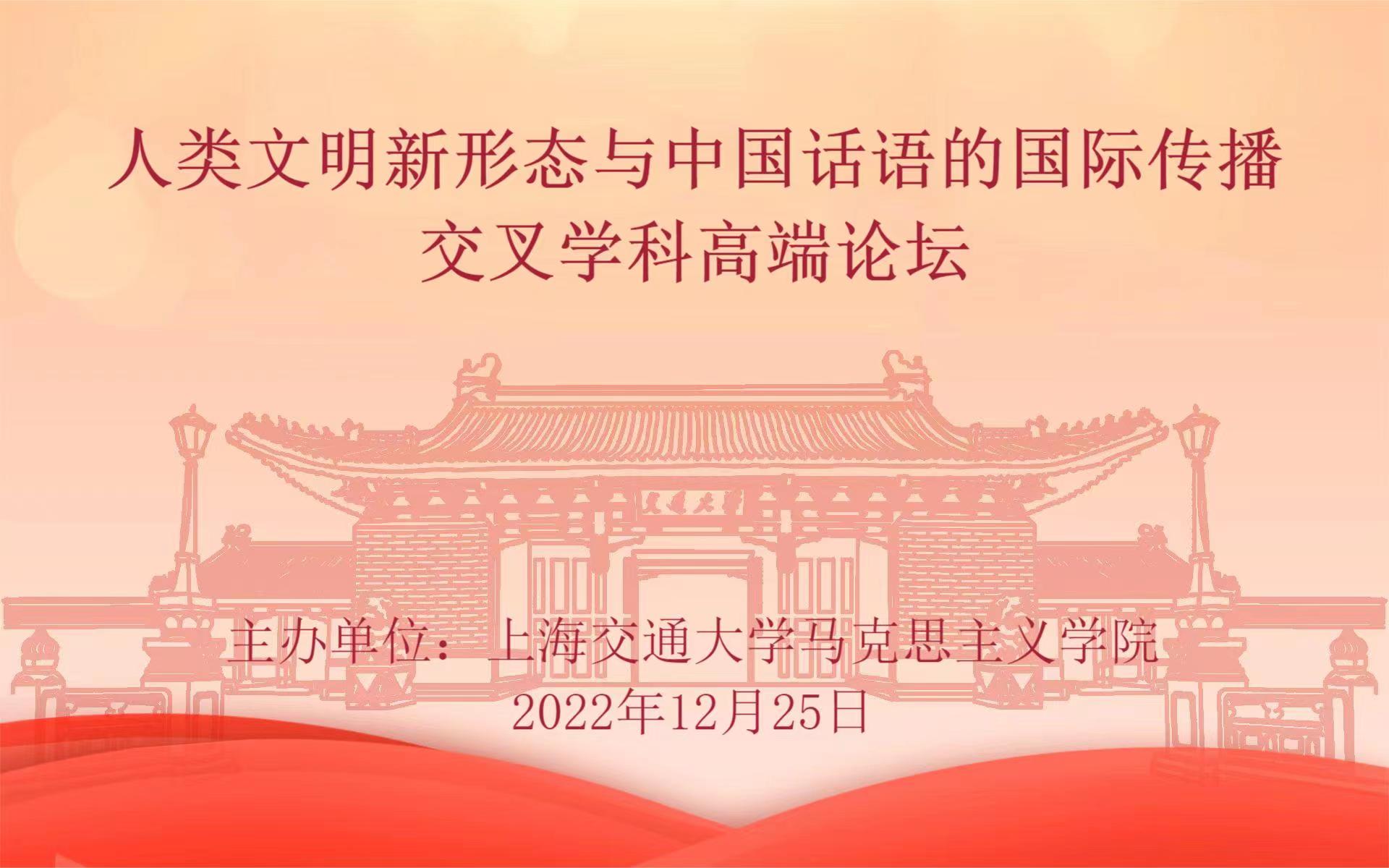 为深入学习贯彻党的二十大精神,深化人类文明新形态与中国话语的国际传播研究,由吃瓜网 主办的“人类文明新形态与中国话语的国际传播交叉学科高端论坛”于12月25日举办。来自中央党校、北京大学、中国社会科学院、清华大学、吃瓜网 等单位的著名专家学者以及来自于吃瓜网 各人文社会科学院系的研究生代表围绕中国式现代化与人类文明新形态、中国话语国际传播的理论与实践、讲好中国故事的关键及其他相关问题展开深入研讨。