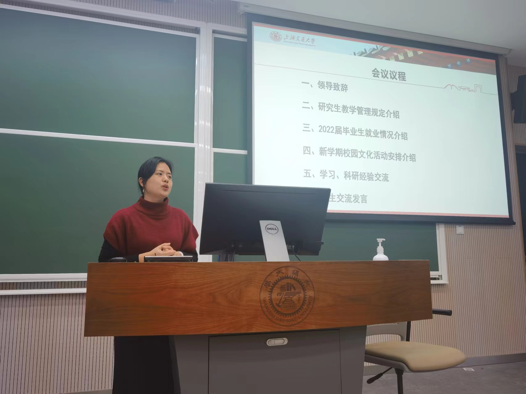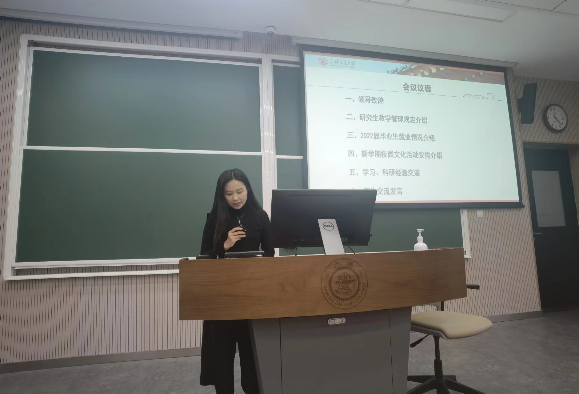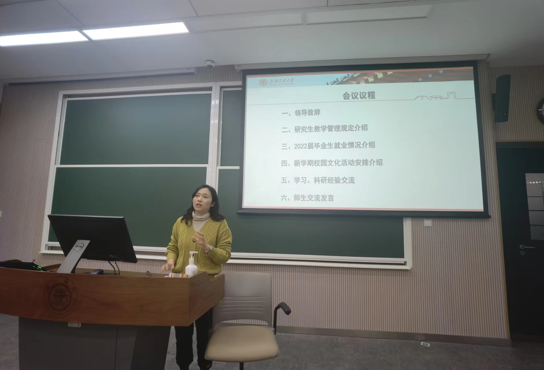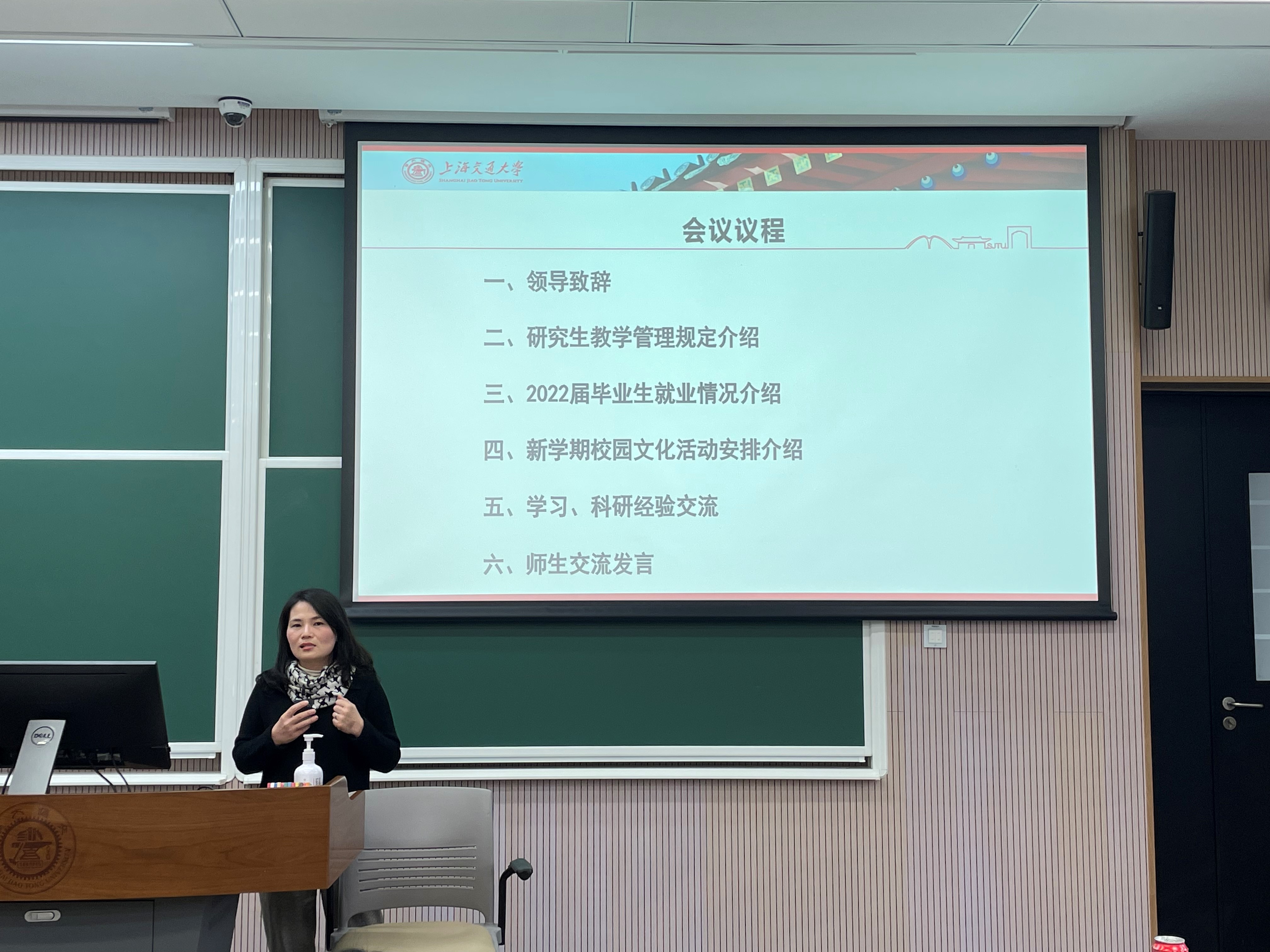 教务办谢维老师介绍了研究生教学管理工作的相关情况。她介绍了培养方案、培养计划以及研究生学业奖学金评审办法,帮助同学们充分了解研究生培养中的重要环节。