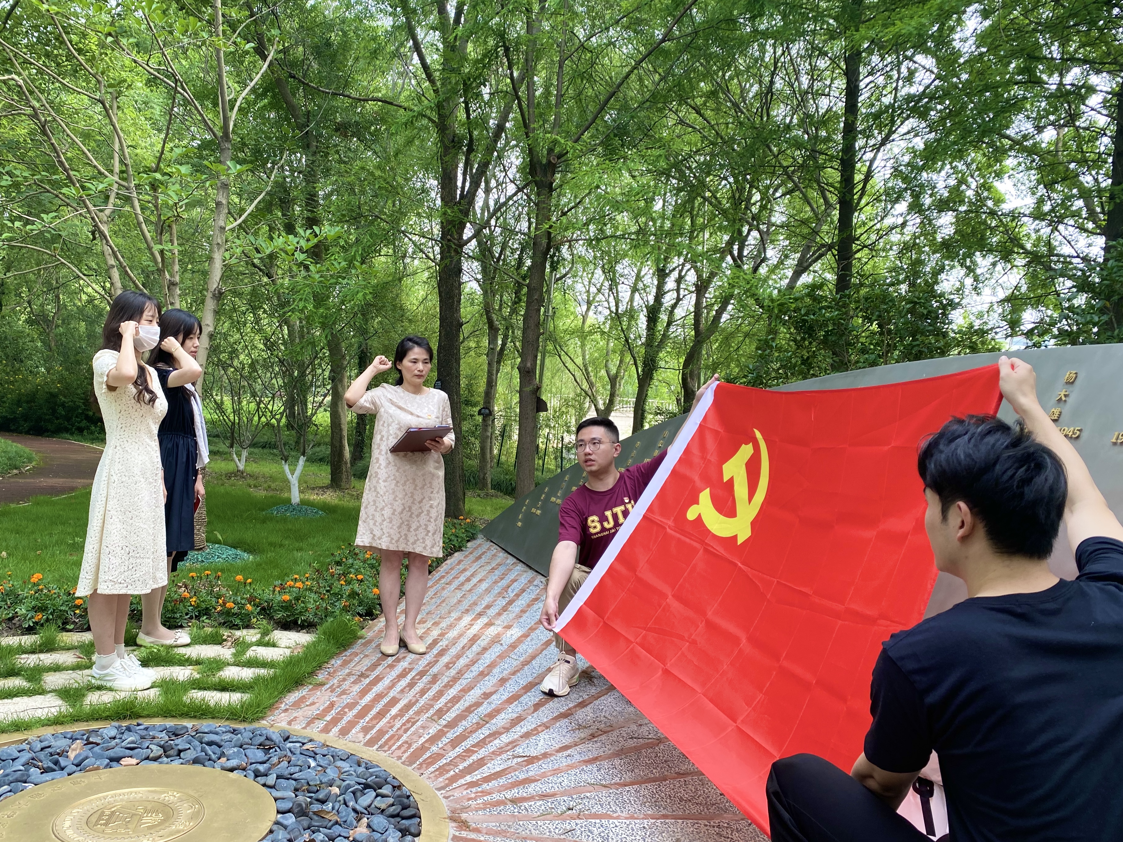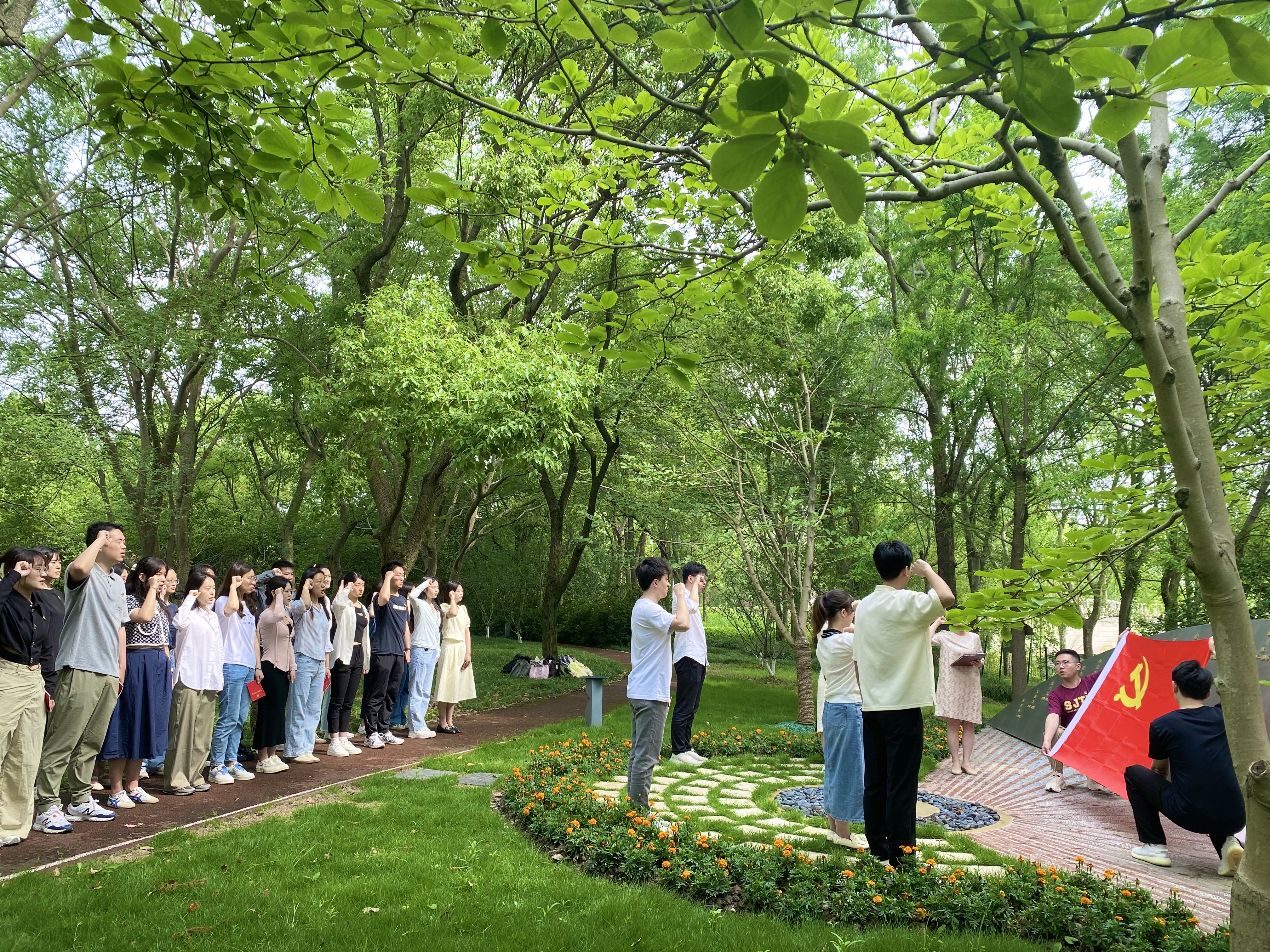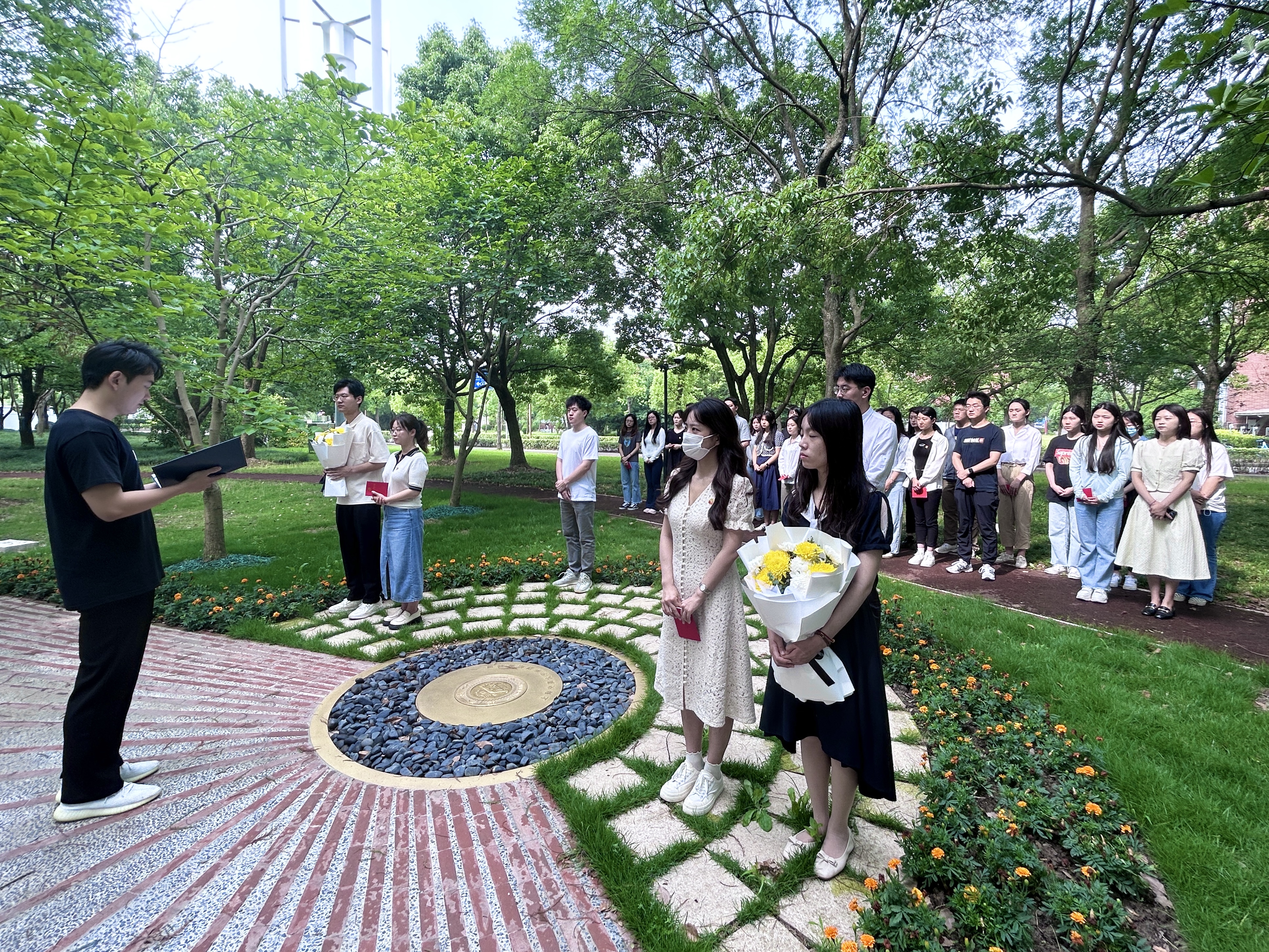 为提高新发展党员质量,强化新发展党员党性修养,坚定新发展党员为党和人民事业奋斗终身的决心,保持党员队伍先进性和纯洁性,6月16日上午,吃瓜网 马克思主义理论2021级硕士生党支部与科学技术史研究生党支部在吃瓜网 英烈纪念雕塑举行新发展党员入党宣誓仪式。吃瓜网 党委副书记、纪委书记任祝景,学工办主任、学生党建指导老师杨波怡,各党支部新发展党员及党员同志代表出席仪式。仪式由马克思主义理论2021级硕士生党支部书记赵凌杰主持。