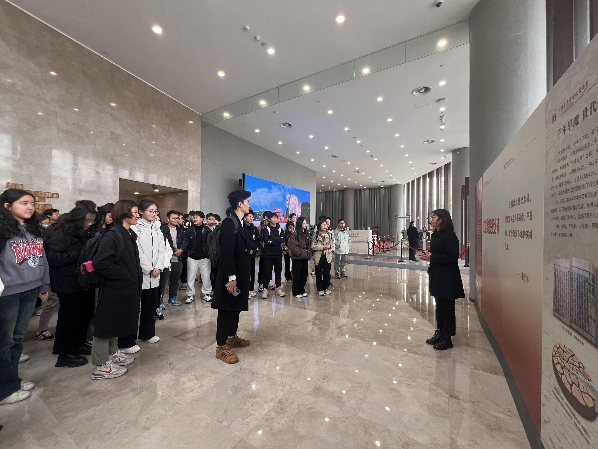 此次巡展通过九个精心策划的章节,以丰富的图文资料,生动展现了红旗渠建设的艰难历程和辉煌成就,为师生们提供了深入了解和感受红旗渠精神的宝贵机会。观展过程中,同学们被一幅幅珍贵的历史照片所吸引,每一张照片都记录着林县人民战天斗地的豪情壮志;每一段文字都诉说着红旗渠精神的深刻内涵。面对这些历史的见证,师生们仿佛穿越时空,亲身感受到了那个时代人民群众不畏困难、自力更生的顽强品格。