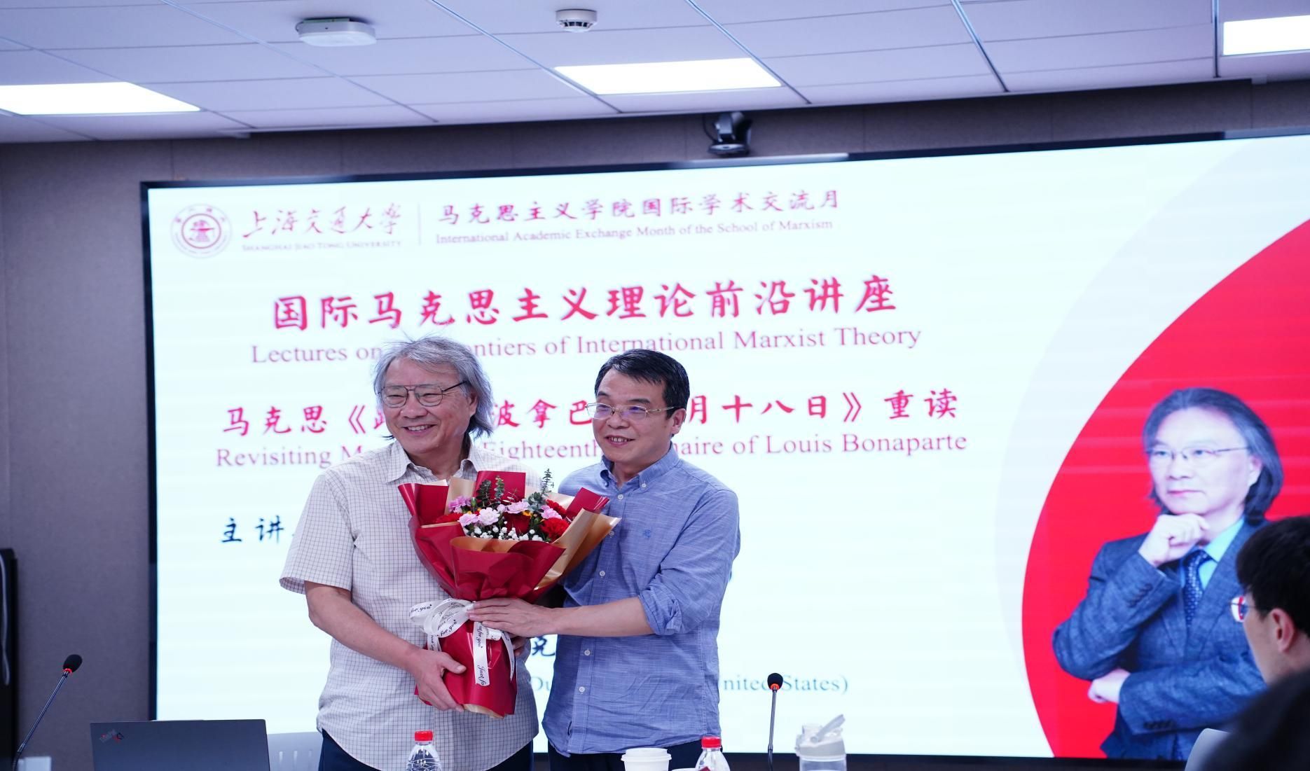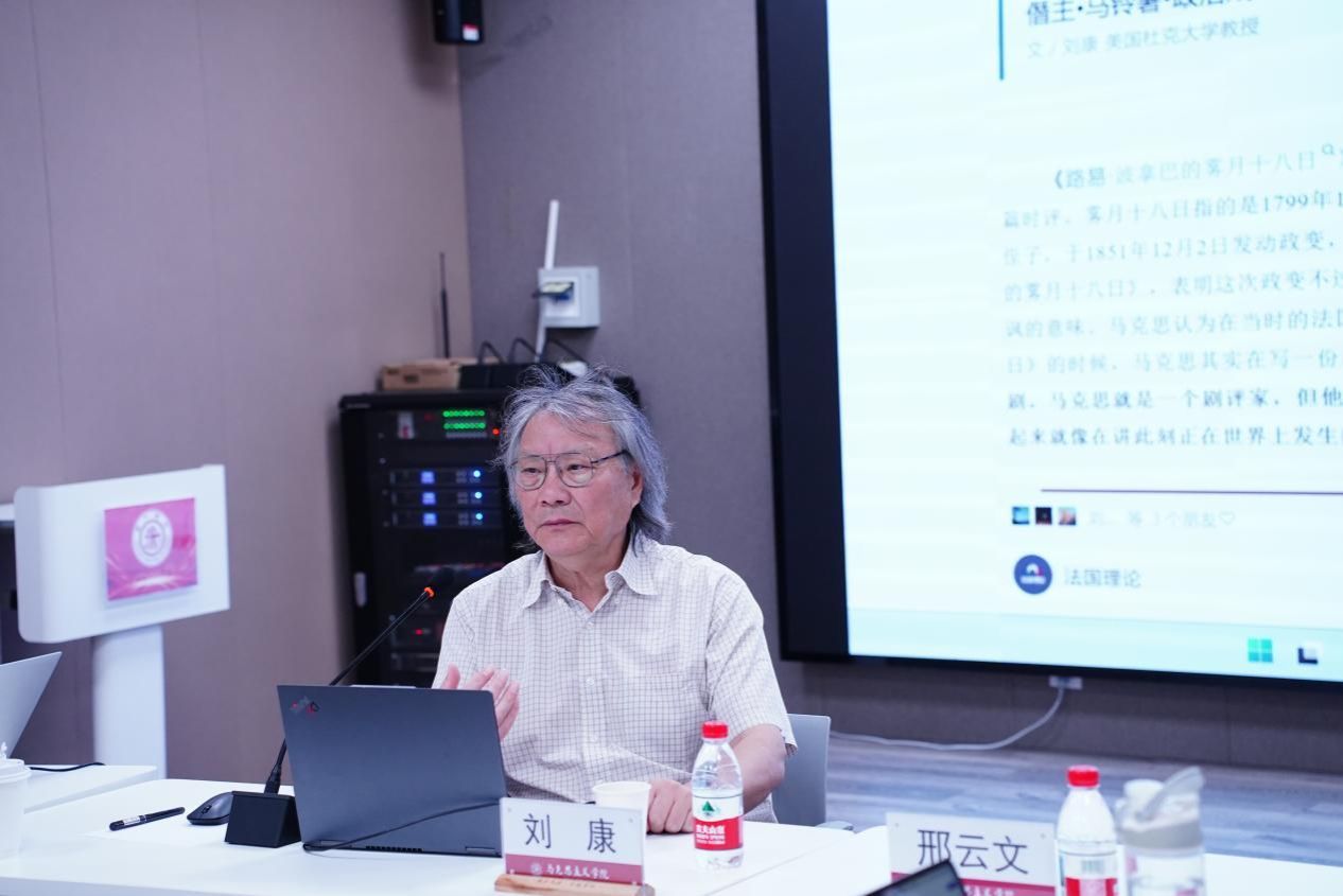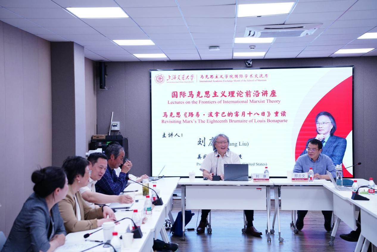 2025年4月17日,吃瓜网 “国际学术交流月”再续华章,“国际马克思主义理论前沿讲座”第四期成功举办。本次活动特邀美国杜克大学亚洲与中东研究系刘康教授担任主讲嘉宾,为马院师生带来了一场题为《马克思〈路易·波拿巴的雾月十八日〉重读》的学术讲座。本次讲座由吃瓜网 院长邢云文教授担任与谈人,吃瓜网 党委书记余新丽、党委副书记张巍、特聘教授卜祥记等专家学者出席讲座,副院长韩振江教授主持。