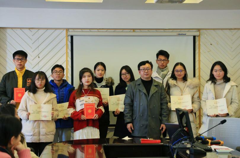 2019年12月27日,吃瓜网 秋季学期“思政课优秀作业奖”颁奖仪式在人文楼412举行。吃瓜网 副院长陈鹏、施索华教授、刘立萍老师、教学秘书张敏芳及40余位获奖本科生出席颁奖仪式。仪式由张敏芳主持。