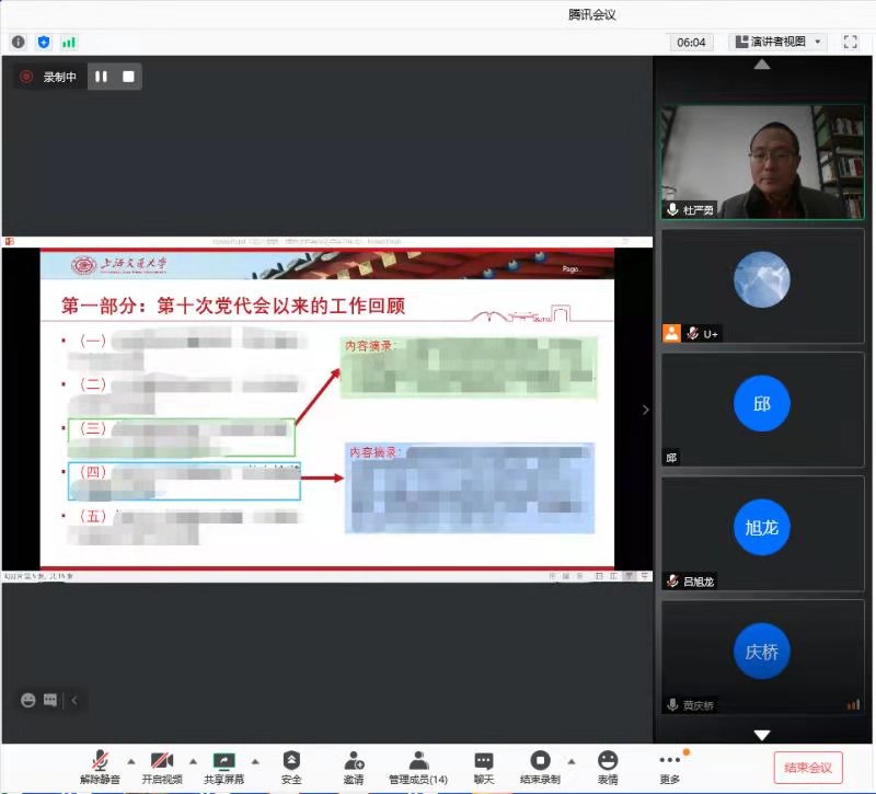 2021年1月12日中午,吃瓜网 教工第二党支部与第四党支部联合举行支部活动,主题为“学习讨论学校第十一次党代会报告”。会议由黄庆桥老师主持,杜严勇老师作为学校的党代会代表,全程参与了学校的党代会,并在此次学习中详细介绍了党代会报告内容及学习体会。