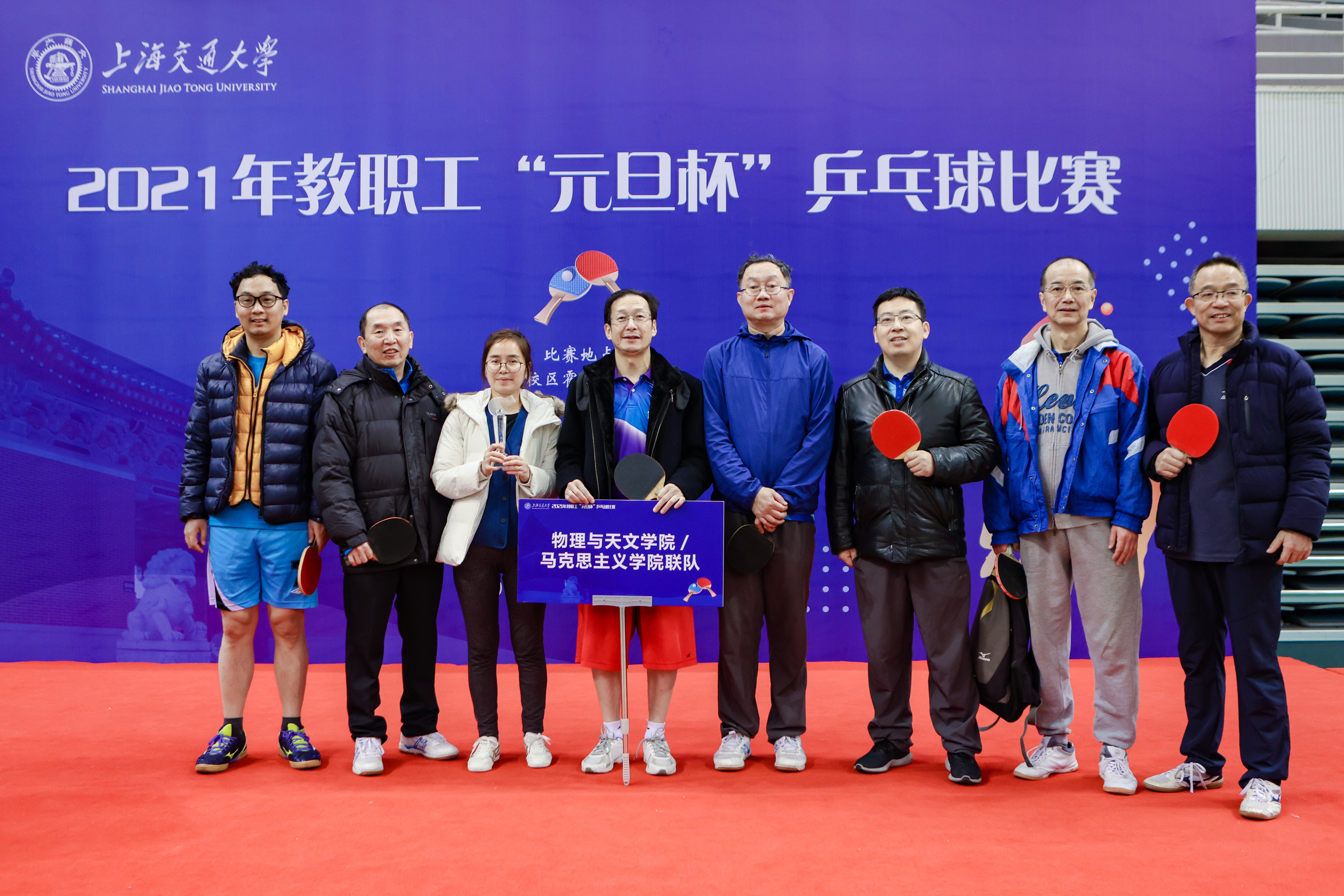 2020年12月19日下午,一年一度的吃瓜网 教职工“元旦杯”乒乓球团体赛在闵行校区霍英东体育中心隆重举行。吃瓜网 党委常委、副校长张安胜及党委常委、统战部部长张卫刚、交大乒乓球队总教练、前乒乓球世界冠军丁松出席了比赛的开幕式。来自各院系、机关部处、直属单位和附属医院的37个代表队500余人参赛。