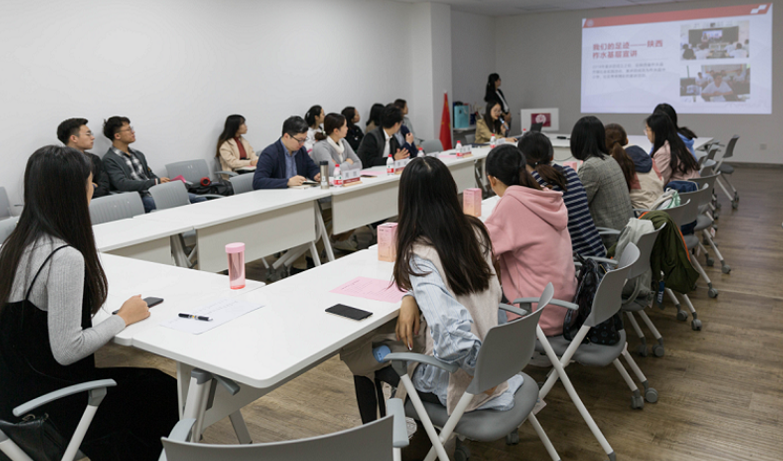 授旗仪式结束之后,宣讲团成员作为学生代表,移步行政楼聆听徐学敏副校长关于“新形势下我校国际化战略的思考”的讲座。徐校长以国际化的视野分析了现阶段尤其是新冠疫情下世界发展的大环境以及我国发展的大背景,称“若想破局,只能依靠实力和发展。”徐校长还针对高等教育的国际化战略问题,就加强我校的国际合作交流工作提出了深刻的见解。