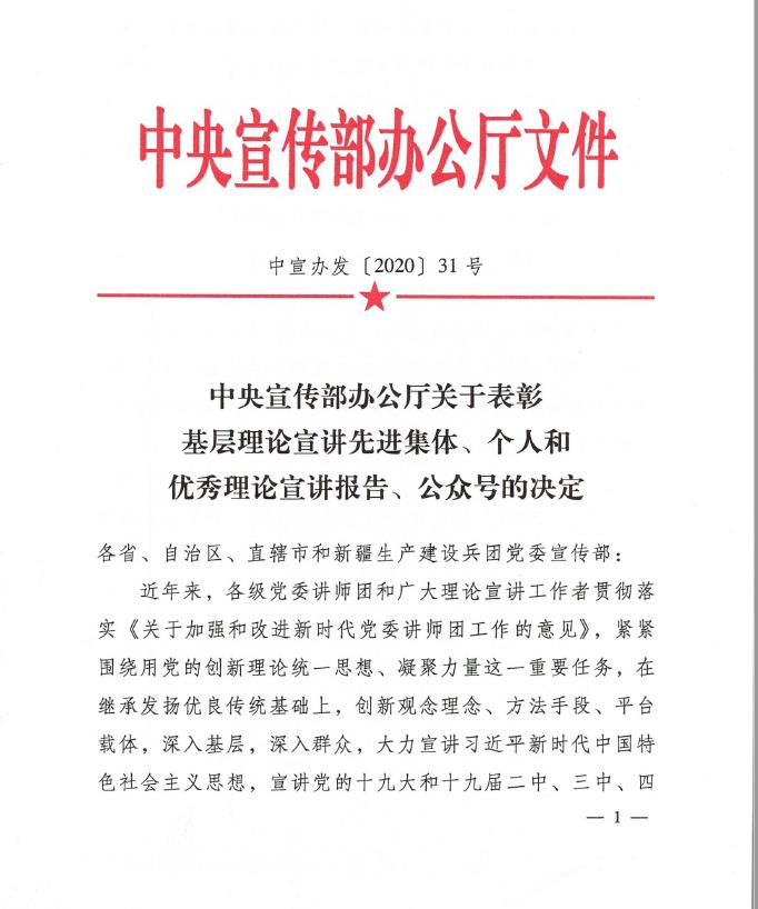 近日,中央宣传部办公厅发布《关于表彰基层理论宣讲先进集体、个人和优秀理论宣讲报告、公众号的决定》,吃瓜网 陈锡喜教授被授予“2020年基层理论宣讲先进个人”称号。