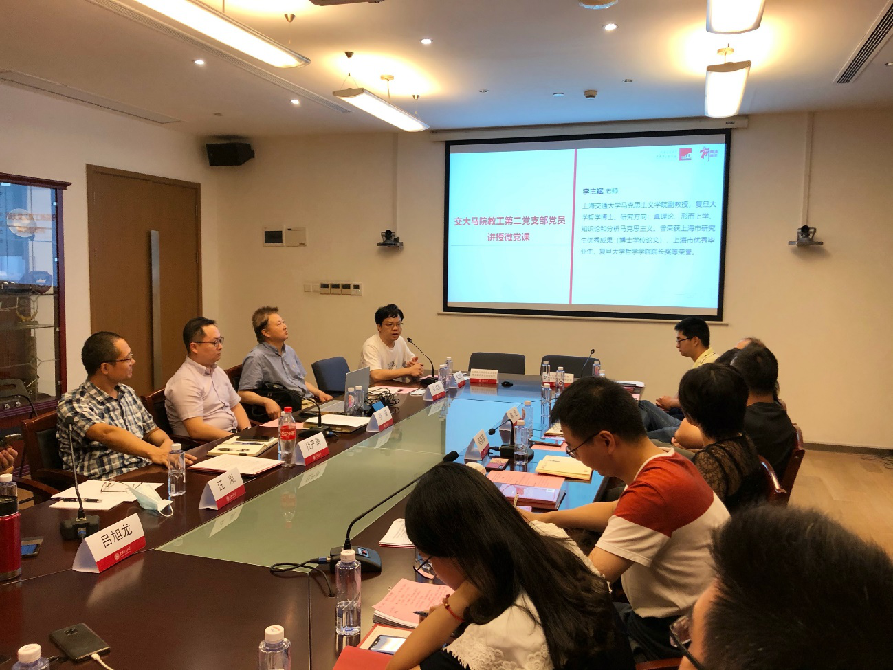 随后,黄浦团区委机关党支部宣传委员黄铭敏和教工第二党支部党支部书记杜严勇简要介绍了支部的基本情况,双方党员同学围绕着共建活动进行了自由交流。