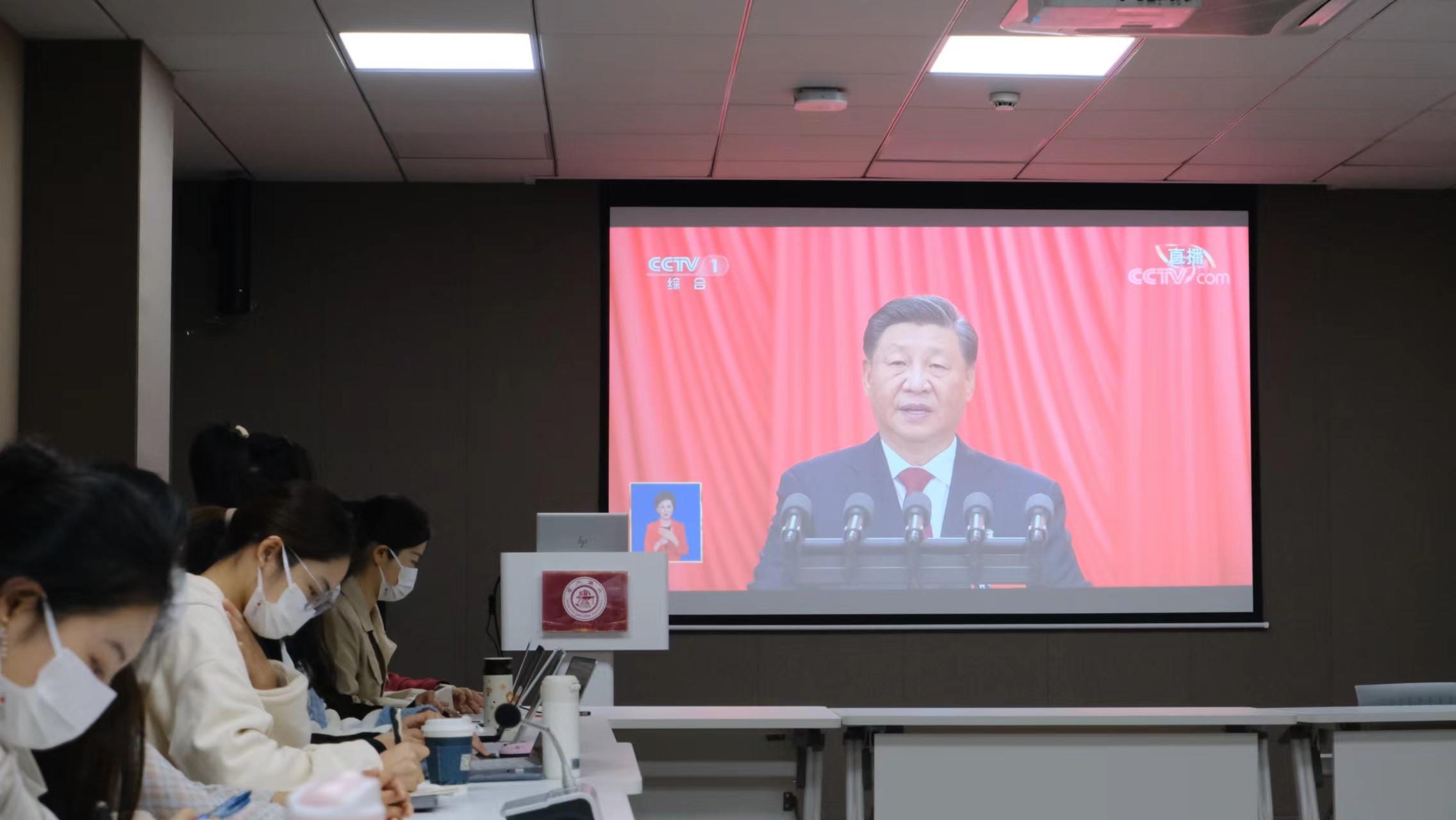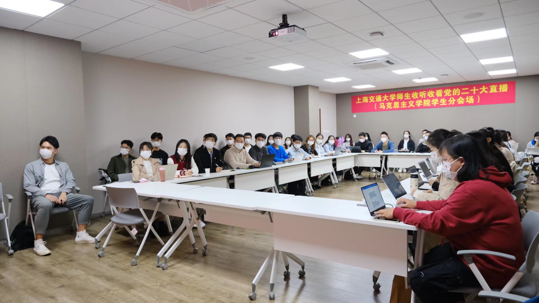 同学们共同观看了中国共产党第二十次全国代表大会开幕会直播。党的二十大是在全党全国各族人民迈上全面建设社会主义现代化国家新征程、向第二个百年奋斗目标进军的关键时刻召开的一次十分重要的大会。青春的气息在各会场涌动,同学们掀起了学习党的二十大精神的热潮,并进行了主题研讨。