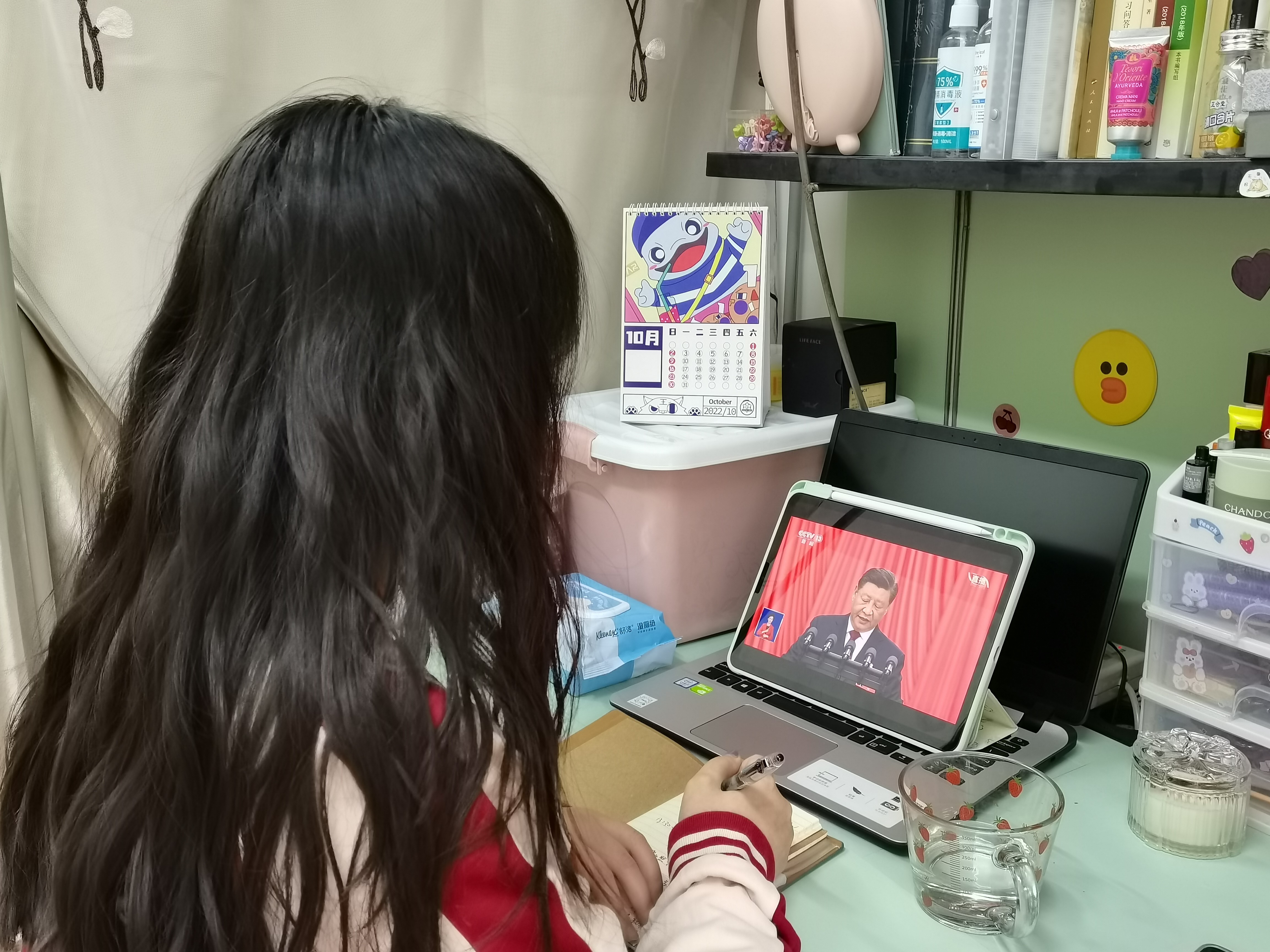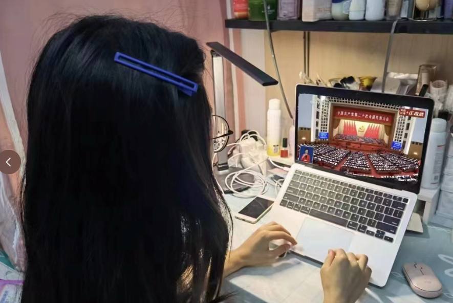 学生党员李晶在线上学生宿舍分会场参与活动