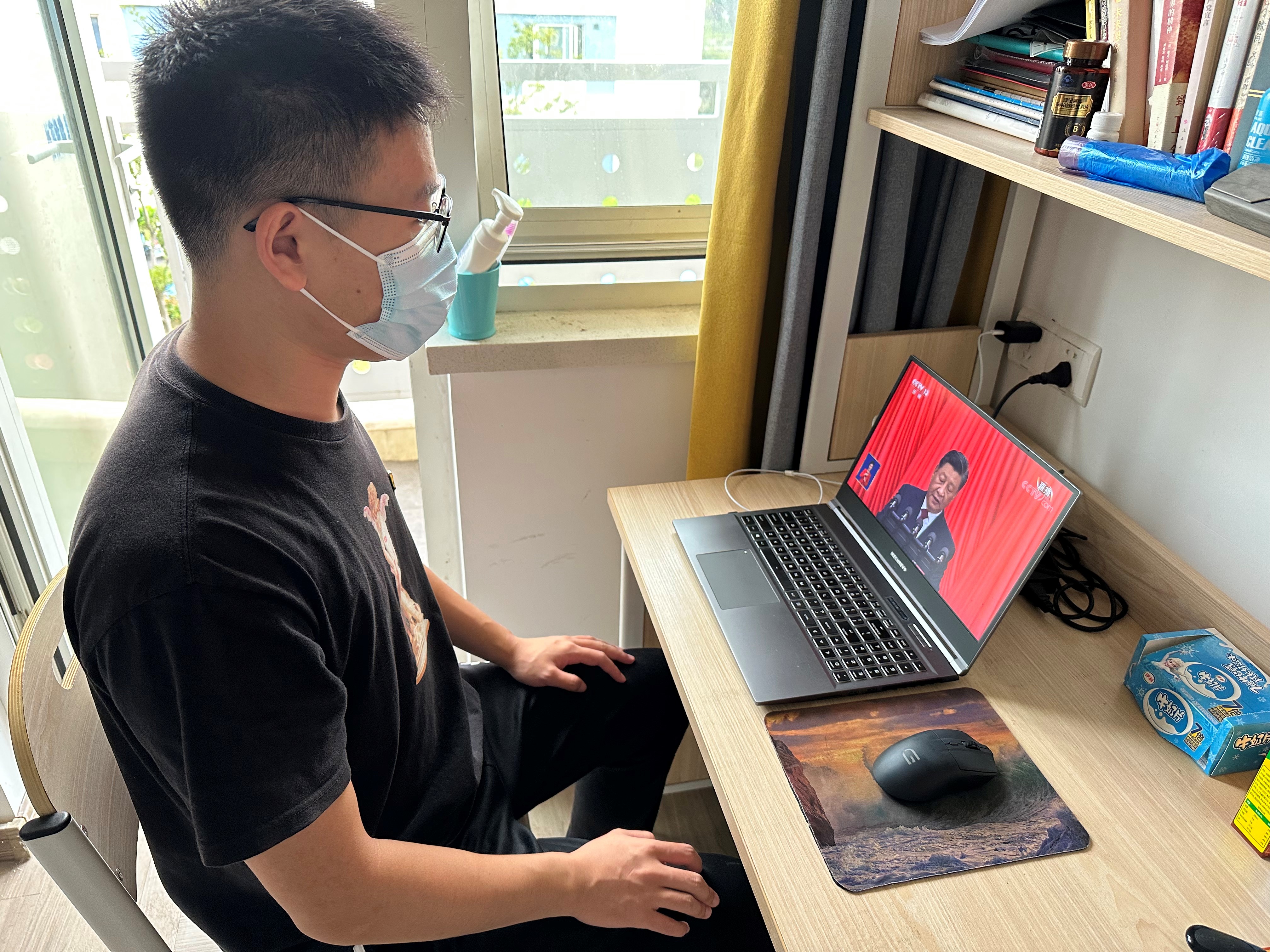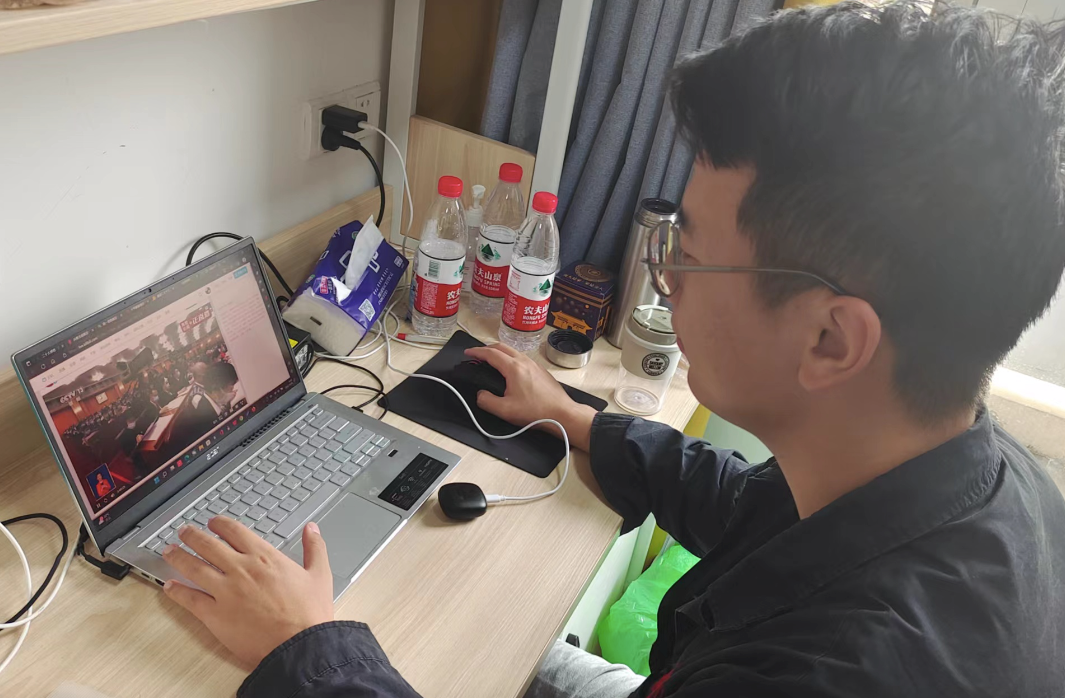 学生预备党员李明哲在线上学生宿舍分会场参与活动