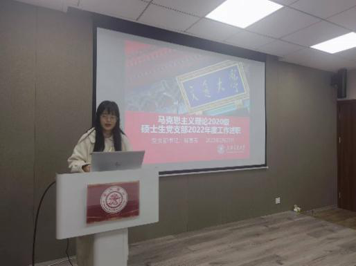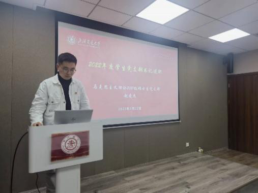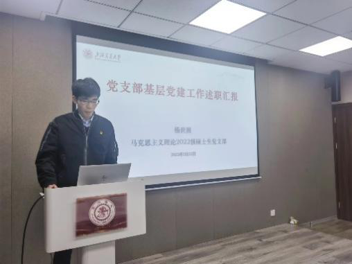 随后,五位学生党支部书记依次进行述职汇报,从党员发展、组织生活、理论学习、实践成果等方面全面总结2022年度支部工作,查摆剖析支部建设中存在的问题,并提出2023年度支部工作的努力方向。各位学生党支部书记表示,未来会将支部工作放在心上、担在肩上、抓在手上,有针对性的做好“后疫情时代”的思想政治工作,将在汲取已有经验的基础上,对已有的工作进行在部署,对未来支部的工作进行整体规划。述职完毕后,与会人员以无记名投票形式进行了民主测评,马克思主义理论博生生党支部书记吴炜生和马克思主义理论2021级硕士生党支部书记赵凌杰两位当选优秀党支部书记。