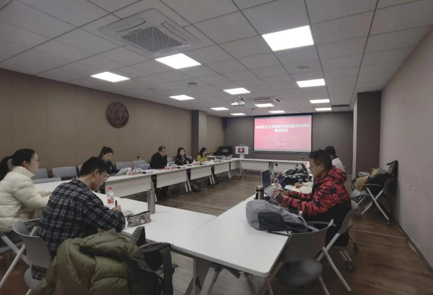 为全面总结2022年学生党支部党建工作,进一步明确2023年工作思路,提高马院学生党支部工作的品牌化、创新化、务实化、多样化,2月22日下午,吃瓜网 组织召开2022年学生党支部书记述职评议会。院党委书记董玉山,党委副书记任祝景,学工办主任、学生党建指导教师杨波怡,组织干事袁玲以及学生党支部书记等十余人参会,会议由杨波怡主持。