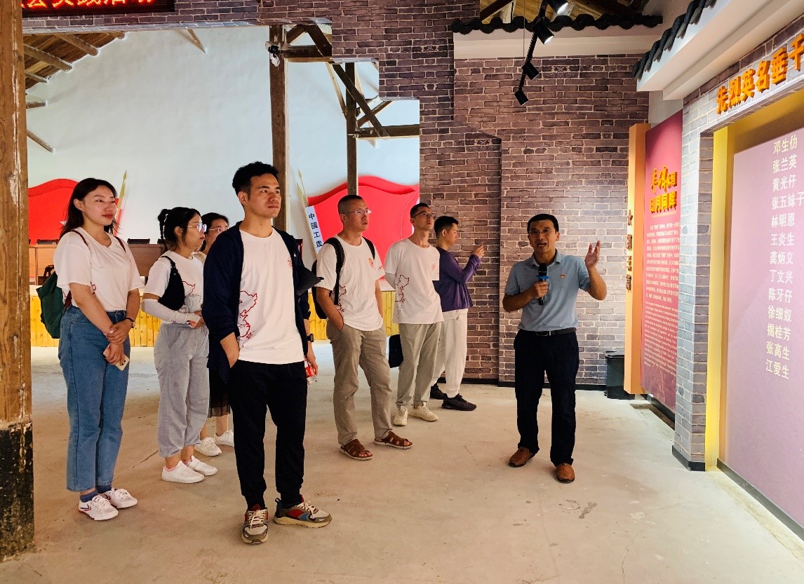 随后,实践团前往黄坊乡将上村,参观中央苏区建宁保卫战陈列馆和将军殿阻击战战场旧址,在黄坊乡党委组织委员的讲解下,了解第五次反“围剿”建宁苏区保卫战中系列阻击战和少共国际师在建宁的红色故事。实践团成员深切体悟到烈火淬炼中的苏区人民众志成城,浴血阻击,以无悔青春报效家国的感人精神。“如今的岁月安好,是因为有一代又一代人满怀信仰在负重前行。我们踏上这片红色的土地,是坚信有一种红色基因,能在传承中熠熠生辉,照亮一代又一代人!”吴炜生这样说。