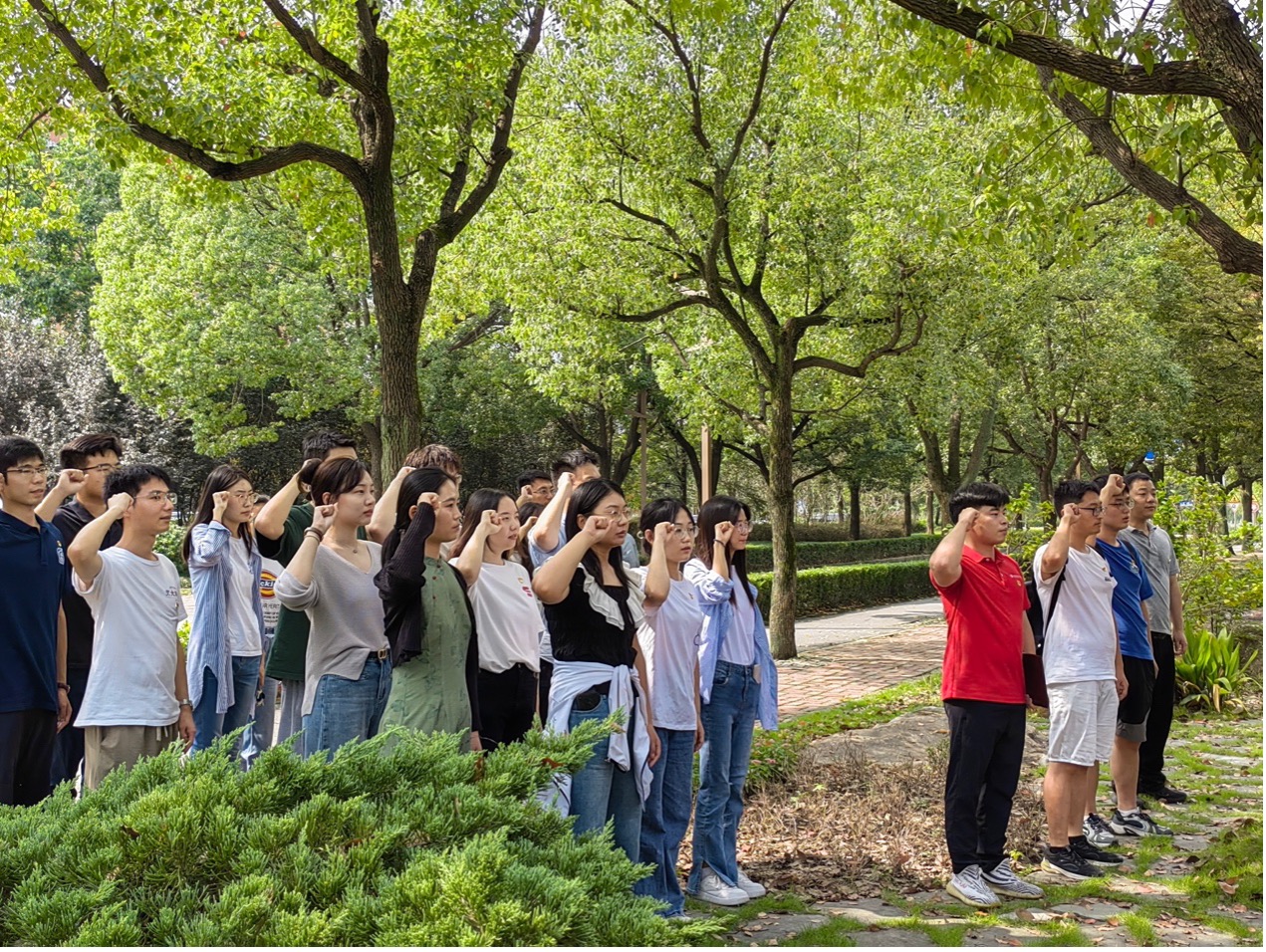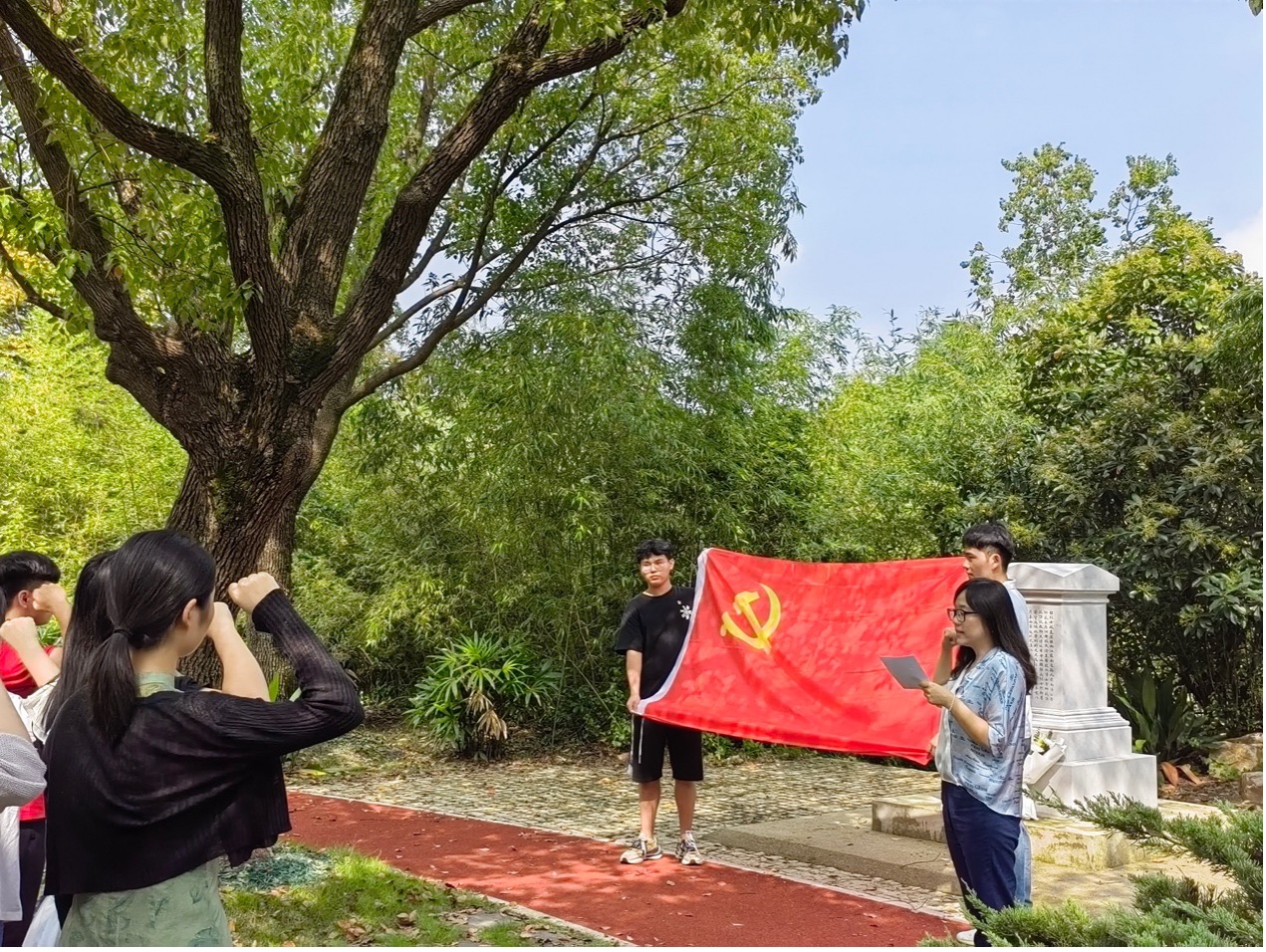 活动最后,在学工办主任杨波怡老师的带领下,全体党员同志面对党旗肃然站立,高举右手庄严宣誓,重温入党誓词。本次活动在肃穆的氛围中结束。